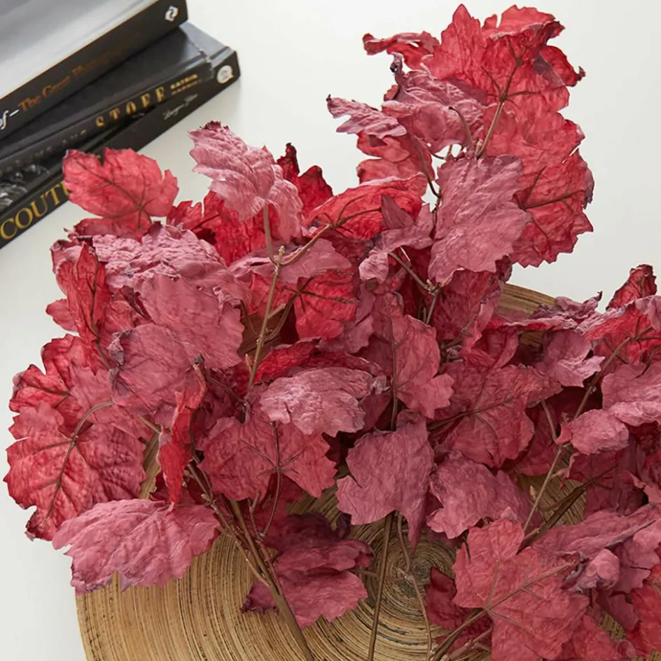 Dieses schöne Trio aus Deko-Zweigen ist von Hand gefertigt und erscheint wie gerade im Herbstwald gesammelt. Freuen Sie sich auf einen farbenfrohen und sehr naturnahen Akzent, welcher wunderbar zum Landhaus-Stil passt. In einem Krug oder einer Vase platziert zieht hiermit ein hübscher Schmuck für den Tisch oder eine Kommode ein, welcher jeden Raum verschönert. Erleben Sie eine wunderbar warme und gemütliche Atmosphäre, die Sie immer wieder neu in jedem Jahr genießen können. Die sorgfältig ausgearbeiteten Blätter treffen auf feinen Eisendraht, der mit Papier umwickelt wurde und daher optisch echten Zweigen sehr ähnlich sieht. Bei uns bekommen Sie auch den perfekt passenden Kranz (23671) zu diesem schicken Trio.
