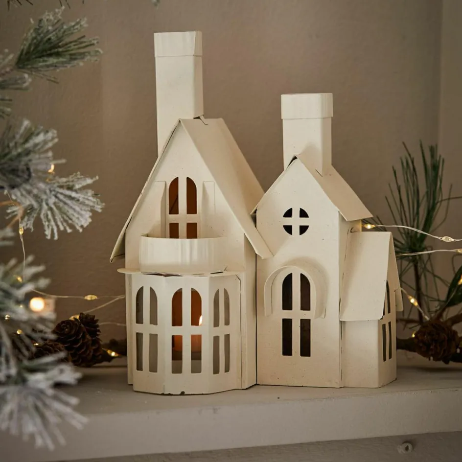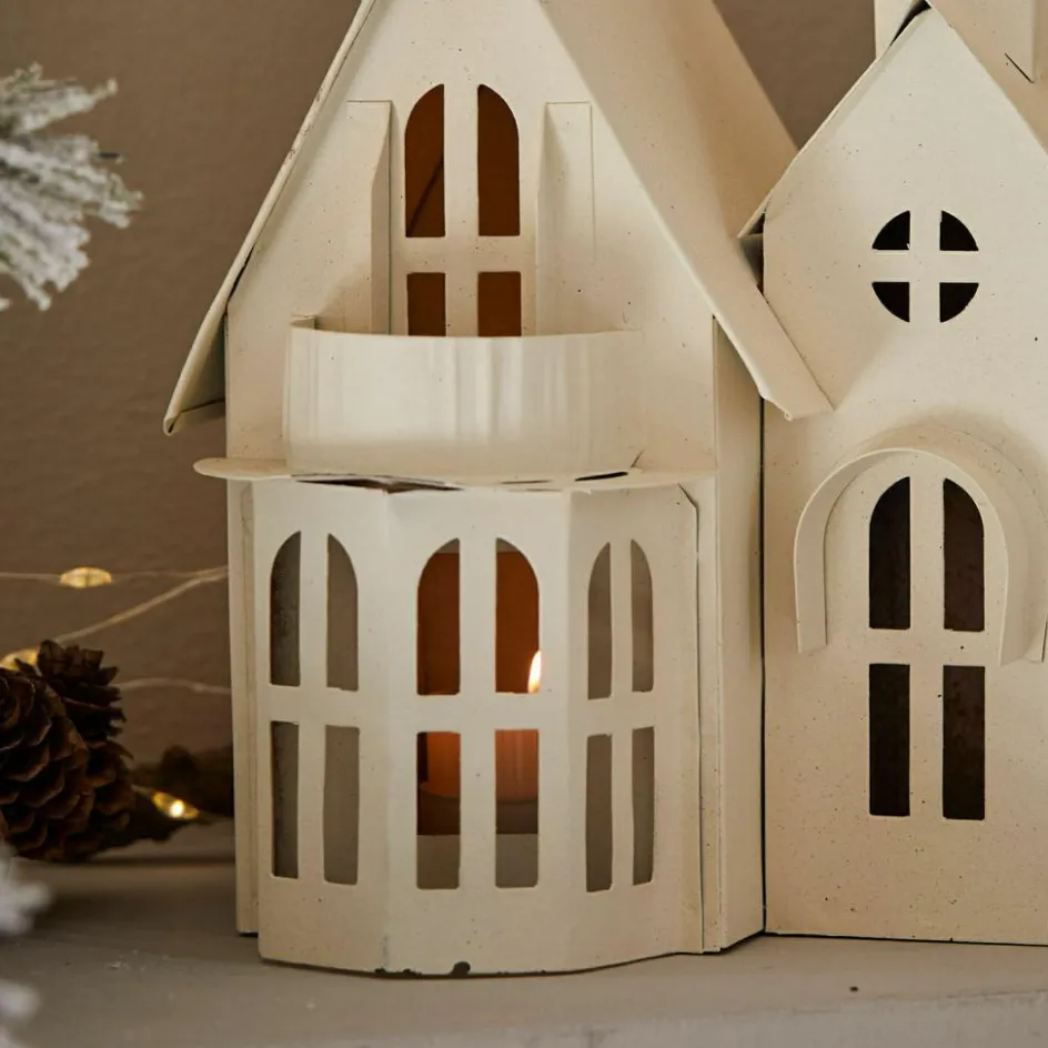Die Welt wie aus dem Märchenbuch verkörpert dieses wundervolle Deko-Haus, das nicht nur zur Weihnachtszeit zauberhaften Charme versprüht. In liebevoller Handarbeit wird es aus handgepresstem Eisen gefertigt – mit zwei offenen Schornsteinen und vielen kleinen Fensterchen, die durch das entfachte Licht der eingesetzten Kerzen effektvoll zum Leuchten kommen. Und weil das Haus im antiken Look noch reizvoller wirkt, ist es zusätzlich mit einem Rost-Finish veredelt. Ein hübsches Deko-Objekt, das auf der Konsole oder dem Beistelltisch im Wohnzimmer alle Blicke auf sich zieht und lange, gemütliche Winterabende stimmungsvoll untermalt. Als Lichtquelle empfehlen wir Teelichter, diese sind jedoch im Lieferumfang nicht enthalten.
