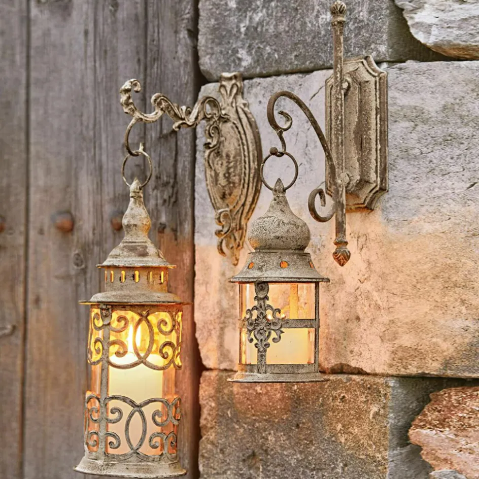 Dieses zauberhafte Duo lässt die Herzen aller, die den mediterranen Stil lieben höherschlagen. Die beiden stilvollen Laternen sind kunstvoll aus Eisen gearbeitet. Im Set erhalten Sie zwei Größen und zwei unterschiedliche Designs – ein reizvolles Zusammenspiel. Die dekorativen und aufwendig gestalteten Haken zur Anbringung an der Wand sind bereits inklusive. Freuen Sie sich über diesen ausgesprochen geschmackvollen Akzent, der romantisches Kerzenlicht auf den Balkon oder in Ihren Garten zaubert. Auch tagsüber sind sie ein sehr attraktiver Anblick mit viel Charme. Ein Doppel mit stilechtem Vintage-Charakter, welches Ihre Outdoor-Oase wunderbar adelt.