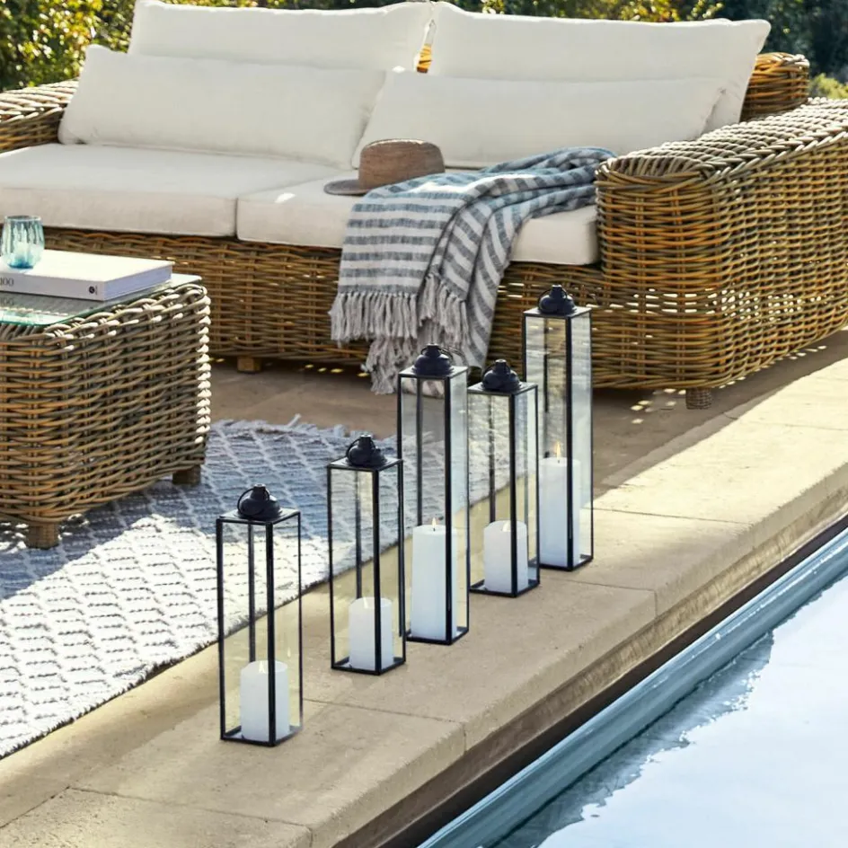Klar, klassisch, elegant – diese beiden hochwertigen Laternen sind absolut zeitlos und harmonieren mit jedem Ambiente. Sie bestehen aus Glas und Eisen und kommen in zwei Größen im Set zu Ihnen. Da beide je eine Tür zum Öffnen haben, lassen sich ganz leicht Kerzen einstellen und auch wieder wechseln. Genießen Sie so das ganze Jahr über eine romantische und sehr gemütliche Beleuchtung, ob an warmen Sommerabenden oder kalten Winternächten. Das angenehm dezente Design kommt nicht aus der Mode und passt zu vielen Interieurs. Oben befindet sich je ein runder Griff, an dem Sie die edlen Laternen ganz leicht nach Wunsch verstellen können. Hiermit liegen Sie wirklich immer richtig.