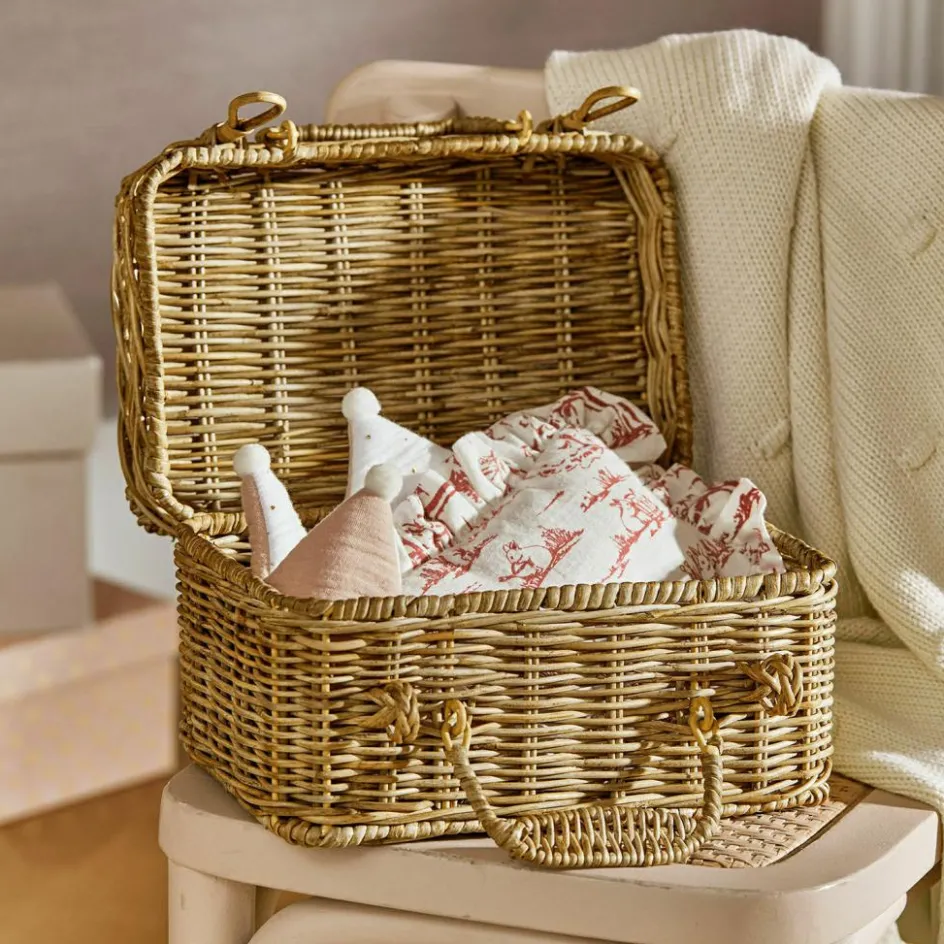 Ein Koffer, der Kinderträume wahr werden lässt! Der leichte Rattankoffer bringt durch sein liebevolles Flechtmuster und seine natürliche Optik eine besondere Note in jedes Kinderzimmer. Egal, ob als Schatztruhe für kleine Abenteurer oder als stilvoller Begleiter für das nächste Übernachtungsabenteuer – dieser Koffer ist vielseitig einsetzbar und dabei robust dank seines verstärkten Metallrahmens. Der praktische Griff macht das Tragen auch für die Kleinsten kinderleicht, während die liebevoll geflochtene Struktur den Koffer zum stilvollen Accessoire macht. Ein Stück, das für Freude sorgt und gleichzeitig Ordnung bringt.