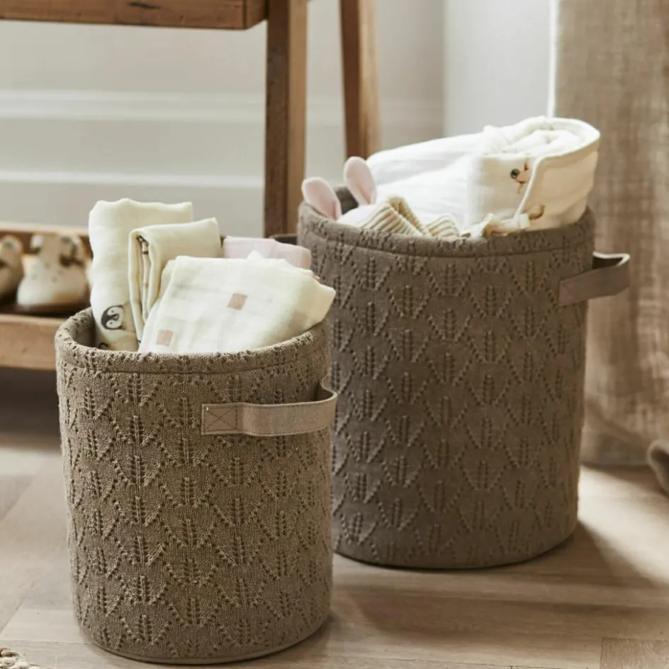 Dieses elegante Korb-Set aus hochwertiger Baumwolle besticht durch sein feines Strickmuster und die warme, natürliche Farbe. Die beiden Körbe sind nicht nur dekorativ, sondern auch unglaublich praktisch für die Aufbewahrung von Spielzeug, Wäsche oder anderen Kleinigkeiten. Mit ihren stabilen Griffen lassen sie sich leicht transportieren und bieten eine stilvolle Lösung für jede Aufbewahrung. Die weiche Haptik der Baumwolle sorgt für ein angenehmes Gefühl und macht die Körbe zu einem unverzichtbaren Accessoire in jedem Haushalt.