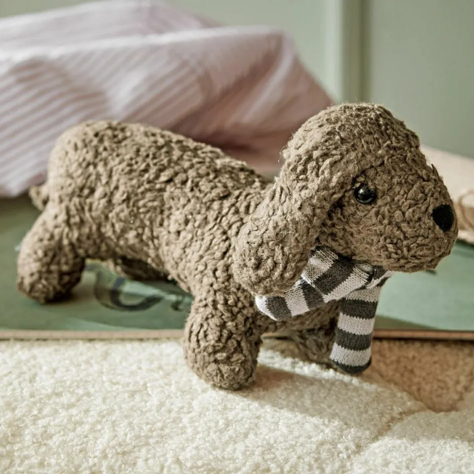 Ein treuer Freund zum Knuddeln und Liebhaben – dieses Stofftier in Hundegestalt ist mehr als nur ein Spielzeug. Mit seinem charmanten Blick und dem weichen, texturierten Stoff lädt er zum Anfassen und Erkunden ein, und das dezente Rasseln weckt die Neugier der Kleinsten. Er ist liebevoll gestaltet, damit Kinder ihn überallhin mitnehmen können – ob im Bettchen, im Kinderwagen oder auf Abenteuer im Kinderzimmer. Ein kleiner Gefährte, der nicht nur ein Lächeln ins Gesicht zaubert, sondern auch die Sinne anregt und zum Greifen und Tasten einlädt.