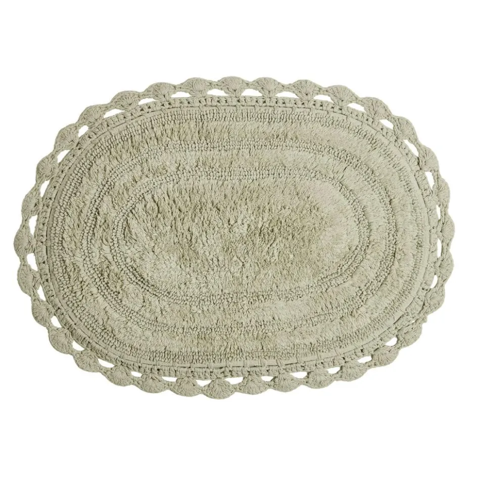 Diese Badematte aus reiner Baumwolle verbindet behagliche Weichheit mit einem charmanten, handwerklichen Look. Das ovale Format wirkt gefällig, die dekorative Häkelkante setzt einen feinen Akzent, der an klassische Textilkunst erinnert. Die getuftete Oberfläche nimmt Feuchtigkeit zuverlässig auf und schenkt ein angenehm warmes Gefühl unter den Füßen. Der dezente Naturton fügt sich mühelos in entspannte Badwelten ein – ob neben der freistehenden Wanne oder vor dem Waschtisch. Wer sein Bad mit einem kleinen Detail spürbar gemütlicher machen möchte, liegt hier goldrichtig: auspacken, auslegen, genießen.