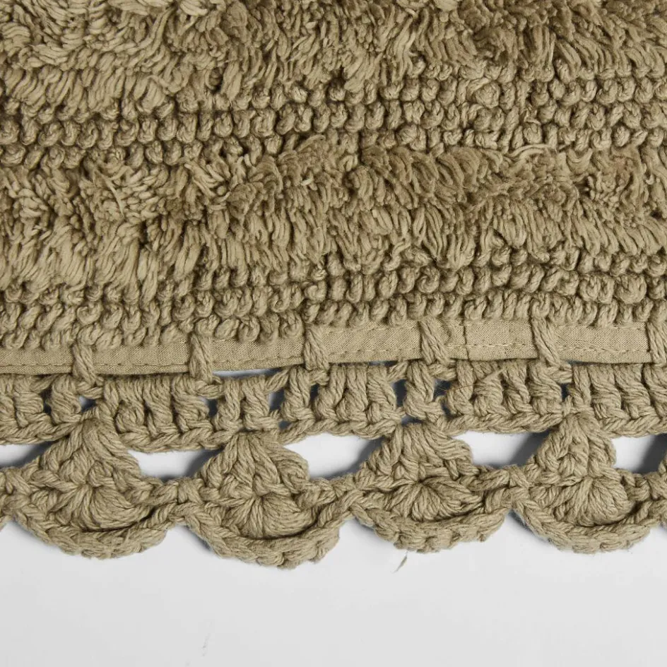 Diese Badematte aus reiner Baumwolle verbindet behagliche Weichheit mit einem charmanten, handwerklichen Look. Das ovale Format wirkt gefällig, die dekorative Häkelkante setzt einen feinen Akzent, der an klassische Textilkunst erinnert. Die getuftete Oberfläche nimmt Feuchtigkeit zuverlässig auf und schenkt ein angenehm warmes Gefühl unter den Füßen. Der dezente Naturton fügt sich mühelos in entspannte Badwelten ein – ob neben der freistehenden Wanne oder vor dem Waschtisch. Wer sein Bad mit einem kleinen Detail spürbar gemütlicher machen möchte, liegt hier goldrichtig: auspacken, auslegen, genießen.