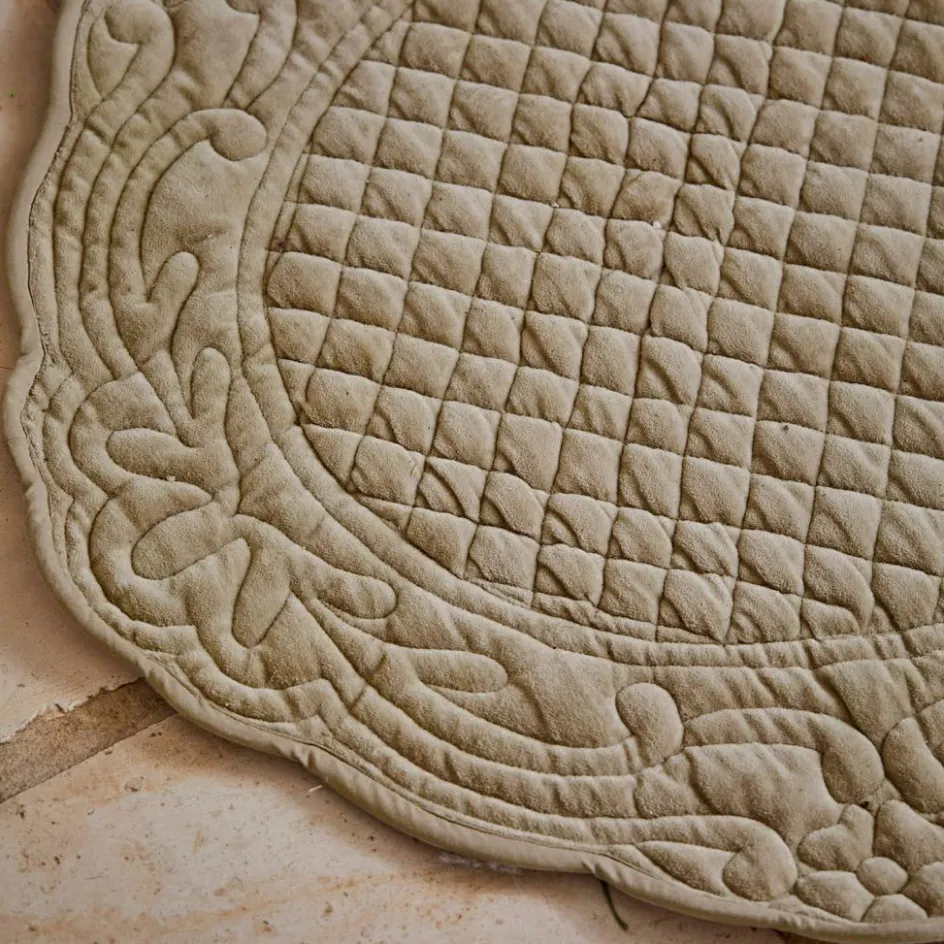 Ein liebevoller Akzent, der Funktion und Romantik aufs Schönste verbindet: Diese ovale Badematte erinnert mit ihrem aufwendig gearbeiteten Rand an zarte Spitzenornamente und bringt eine sanfte Vintage-Note ins Badezimmer. Die samtige Oberfläche ist nicht nur ein haptischer Genuss, sondern unterstreicht auch die zarte Quilt-Struktur mit leichter Wattierung. Jeder Schritt fühlt sich an wie auf einem gepolsterten Stoffstück vergangener Zeiten – weich, angenehm temperiert und elegant in der Anmutung. Die rutschfeste Unterseite sorgt dafür, dass das Schmuckstück auch bei Nässe sicher liegt – ganz ohne Kompromisse beim Komfort. Ein kleines Detail mit großer Wirkung.