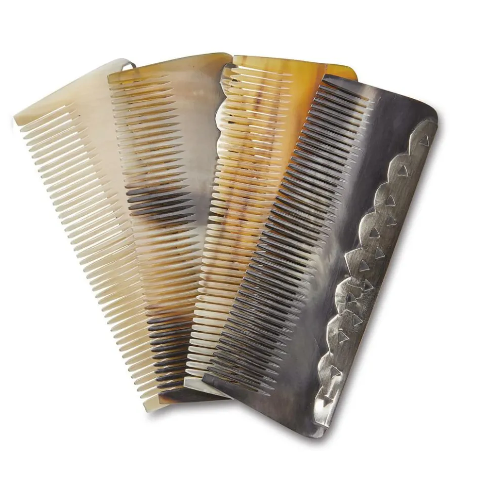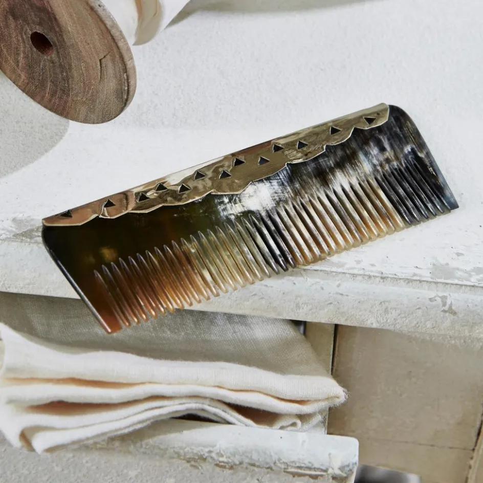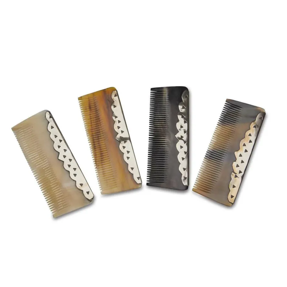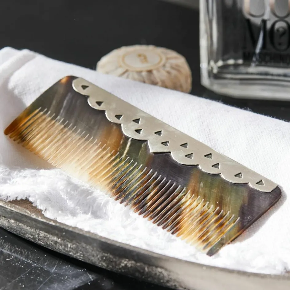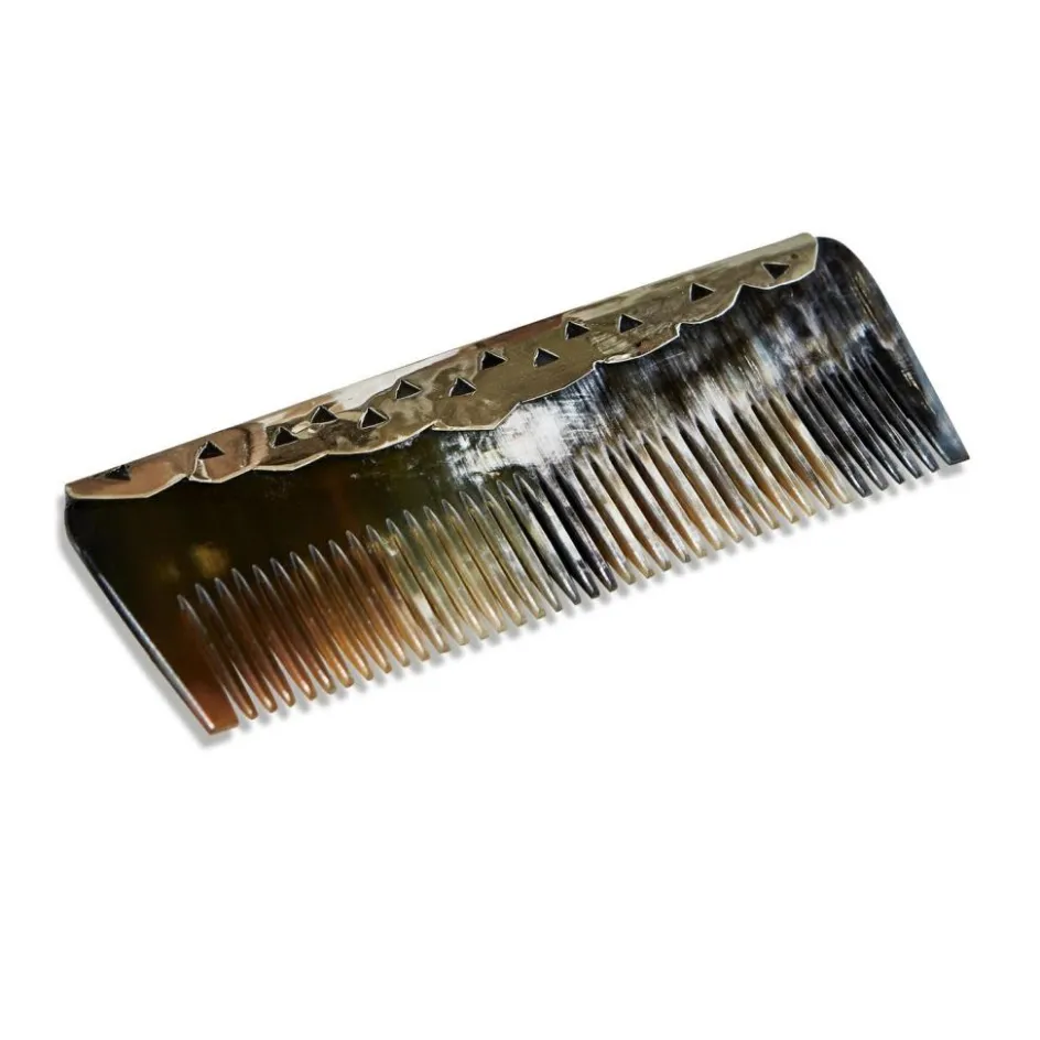 Vor vielen Jahren war der Kamm nicht einfach nur ein Gebrauchsgegenstand. Er begleitete seinen Besitzer ein Leben lang und war immer in der Tasche dabei. Natürlich handelte es sich um keinen schnödes Produkt aus Plastik, sondern um natürliches Material mit hochwertigem Charakter. So wie unser Modell, das in liebevoller Handarbeit aus echtem Wasserbüffelhorn entsteht. Muster und Färbung unterscheiden sich natürlich bei jedem Horn und macht jeden einzelnen Kamm zum Unikat. Der kunstvolle Metallbeschlag unterstreicht den feinen Charakter dieses Liebhaberstücks.