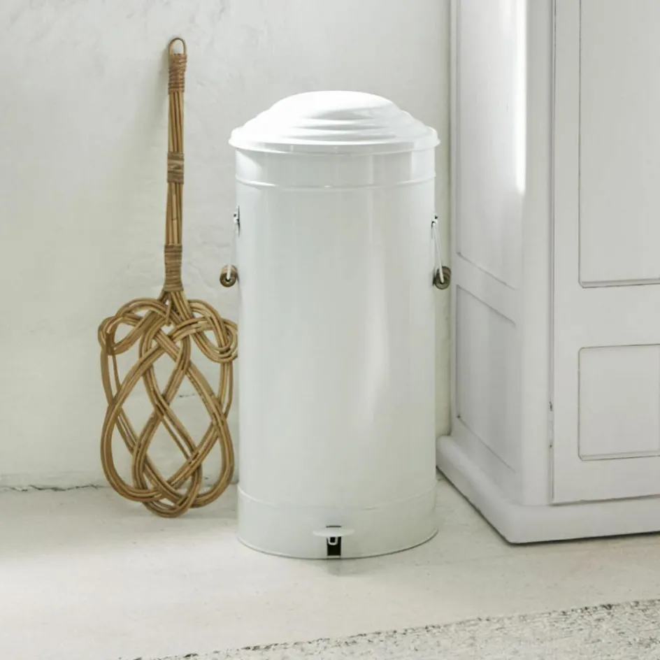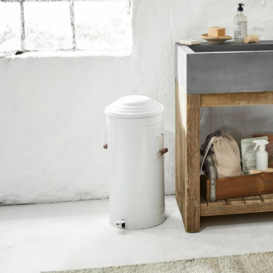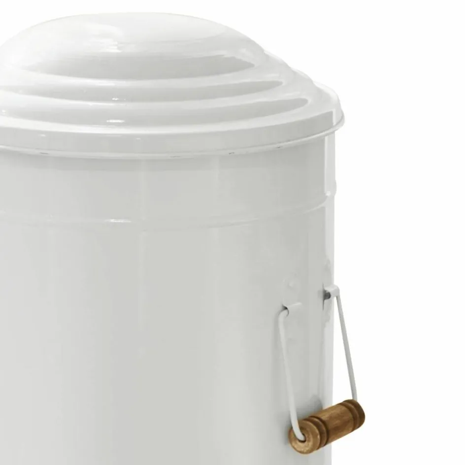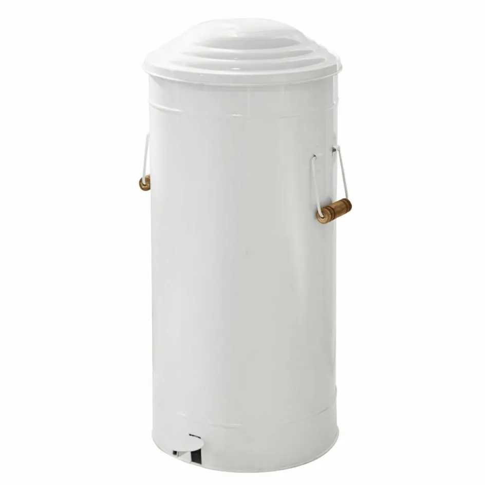 Mit diesem Mülleimer holen Sie sich nicht nur ein funktionales, sondern auch ein dekoratives Element in Ihr Zuhause. Die schlichte Form in klassischem Weiß fügt sich nahtlos in jede Umgebung ein, während die Holzgriffe einen ansprechenden Kontrast setzen. Das widerstandsfähige Metall sorgt für Langlebigkeit, und die Pedalmechanik ermöglicht es, den Deckel bequem und hygienisch zu öffnen. Egal ob in der Küche, im Hauswirtschaftsraum oder auf der Terrasse – dieser Mülleimer ist sowohl praktisch als auch stilvoll.