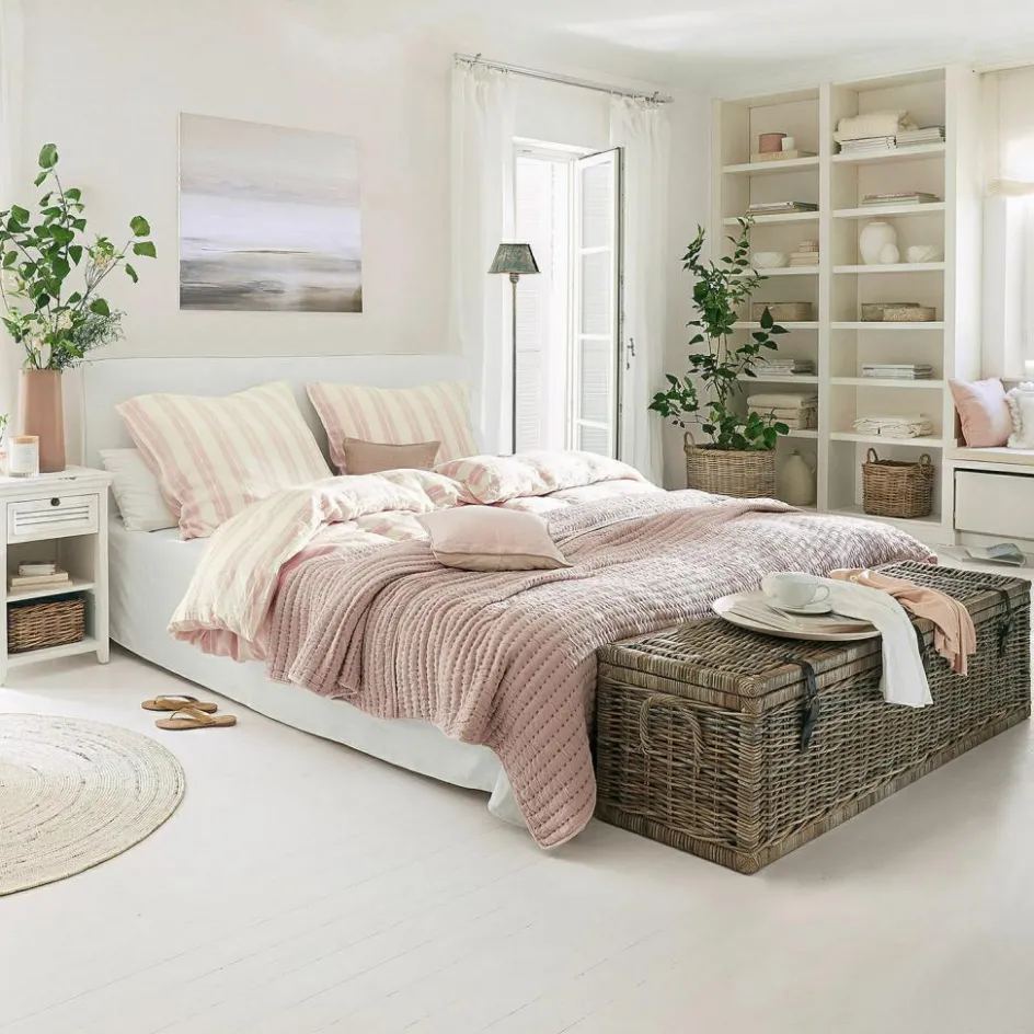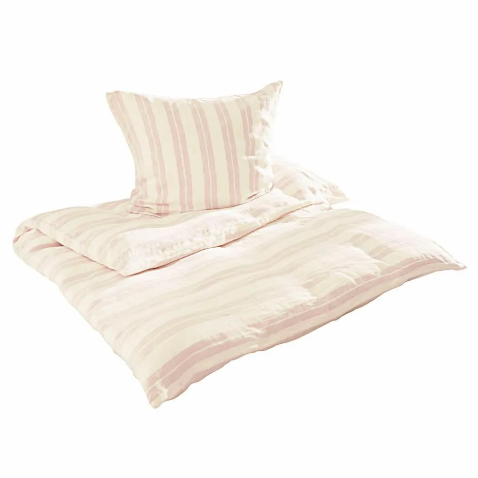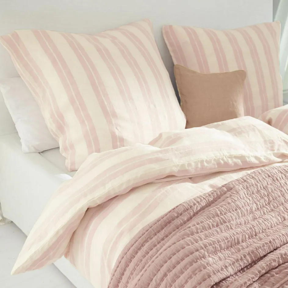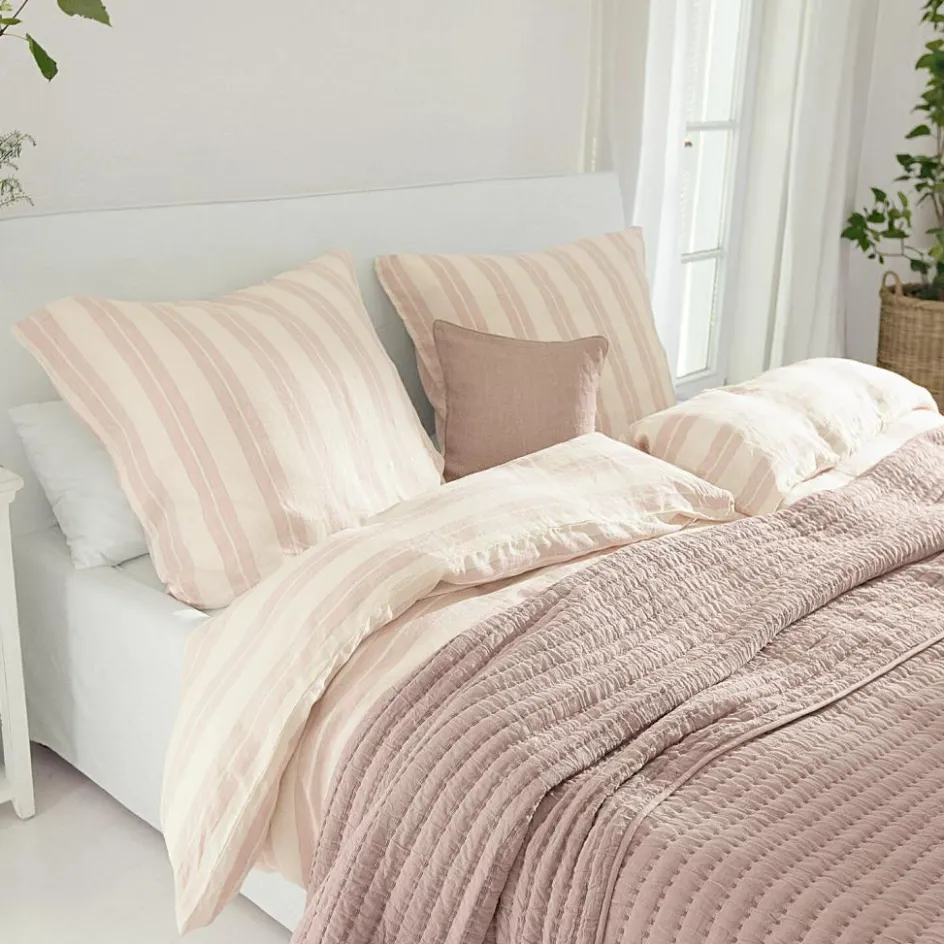 Freuen Sie sich auf süße Träume – diese wunderhübsche Bettwäsche sieht nicht nur toll aus, sie ist auch sehr bequem und angenehm auf der Haut. Das stilvolle Design besteht aus reinem Leinen mit weicher Haptik. Dieses feine Naturgewebe ist robust, strapazierfähig und bakterienhemmend. Außerdem kühlt Leinen von Natur aus leicht, was an wärmeren Tagen wohltut. Das zarte Streifenmuster hat eine sehr ansprechende Optik, welche bestens zum Landhaus-Stil passt. Das Kissen ist horizontal gestreift, der Bettdeckenüberzug vertikal – ein sehr charmanter Akzent. So wird die Nachtruhe zur wahren Freude und Ihr Schlafzimmer erhält ein sehr attraktives Deko-Update mit viel Charme.