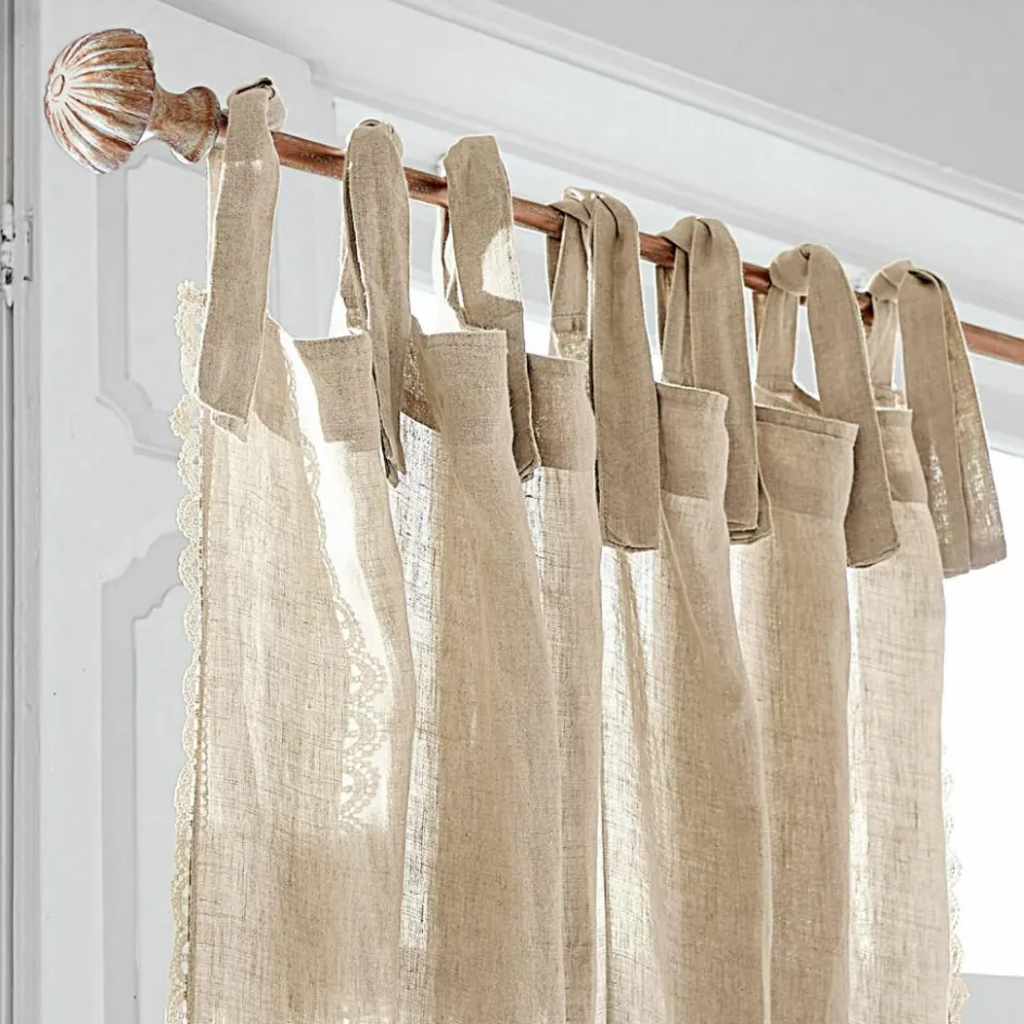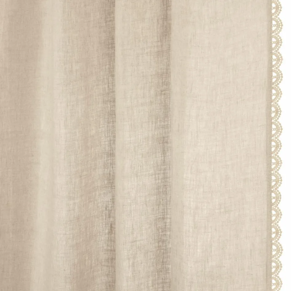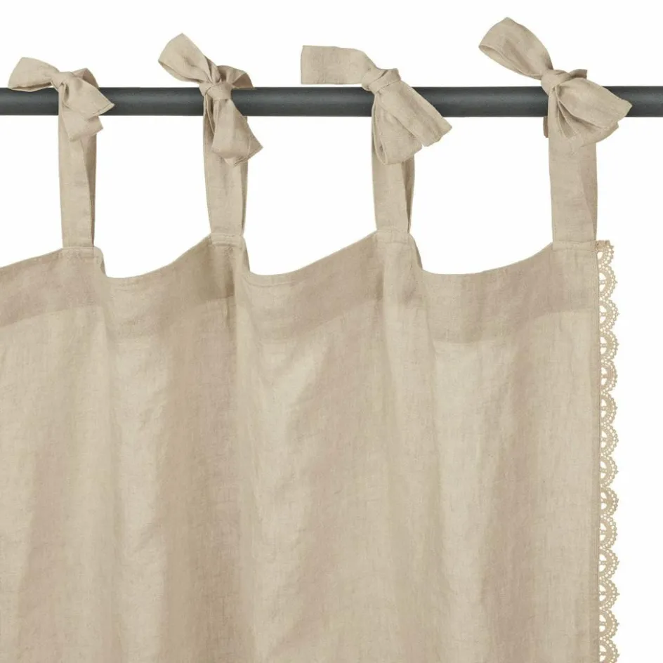Mehr Romantik, mehr Gemütlichkeit. Diese Gardine bringt ihr persönliches Wohngefühl auf den Punkt. Aus reinem Leinengewebe strahlt sie eine edle Natürlichkeit aus, begeistert mit weichem Fall und alltagstauglicher Strapazierfähigkeit. Ziehen Sie die Gardine vor das Fenster, schützt sie vor neugierigen Blicken und taucht den Raum in ein sanftes Licht. Die kunstvolle Bogenspitze entlang der Seitenkante ist schmückendes Extra und versprüht pure Nostalgie. Ein zauberhafter Dekoakzent, der Ihr Zuhause im verspielten Vintage-Stil noch wohnlicher macht. Hübsche Bindebänder helfen bei der Befestigung an die Vorhangstange. Durch die zurückhaltende Farbgebung harmoniert das Textil mit jedem Mobiliar.