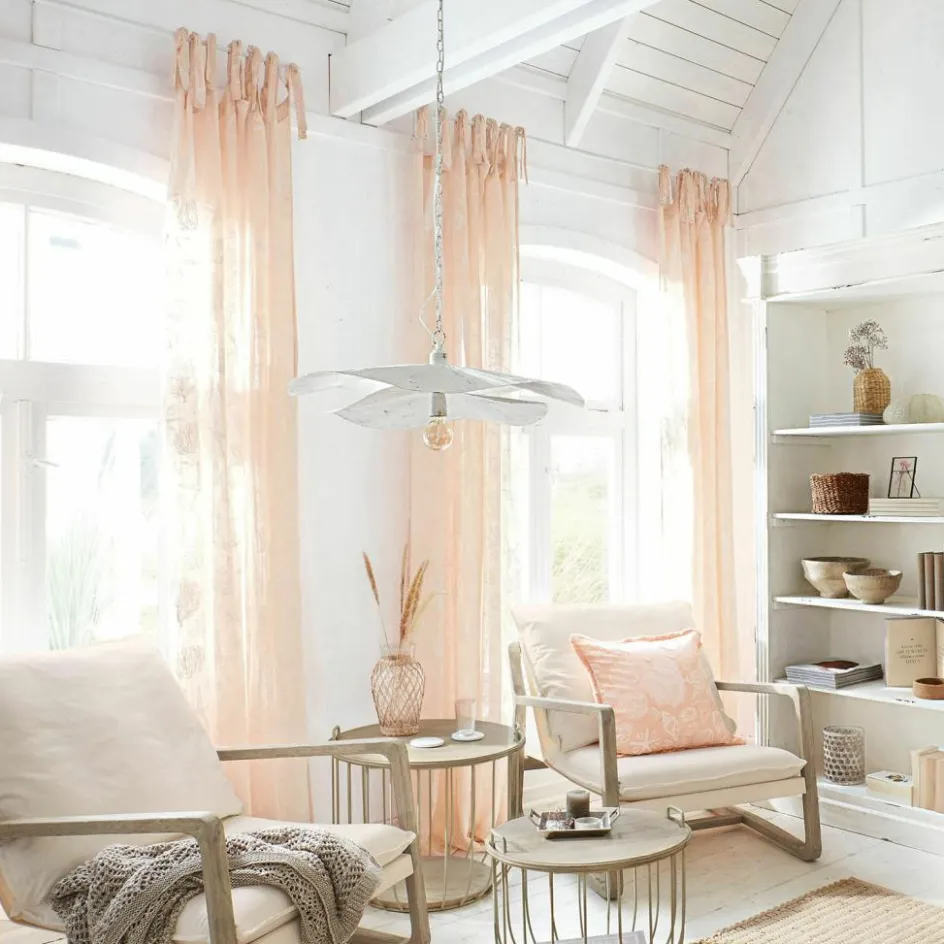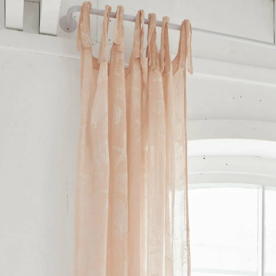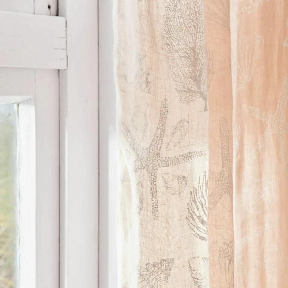 Diese hübsche Gardine zaubert maritimes Flair zu Ihnen, ganz wie in den Ferien an der See. Sie ist leicht und transparent, wodurch sie vor fremden Blicken schützt und dennoch eine angenehme Lichtstimmung garantiert. Das feine Gewebe aus reinem Leinen ist mit einem bezaubernden Muschel-Druck geschmückt. Es hat zudem Bindebänder, wodurch die Anbringung sehr einfach ist. Dieses stilvolle Accessoire passt sehr gut zum Landhaus-Stil und macht sich bestens in Wohnräumen, der Küche oder im Home Office. Träumen Sie sich mit dieser hübschen Gardine ans Meer, und wer mag, findet bei uns auch die perfekt passende Kissenhülle (Nr. 23310) wie ein passendes Plaid (Nr. 23383) dazu.