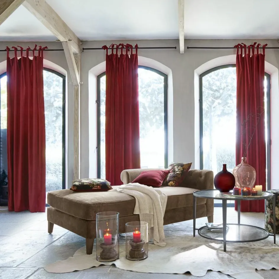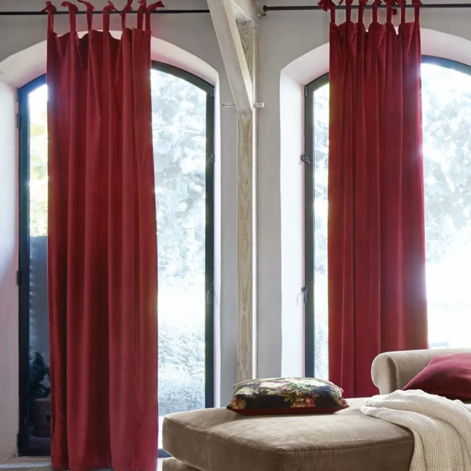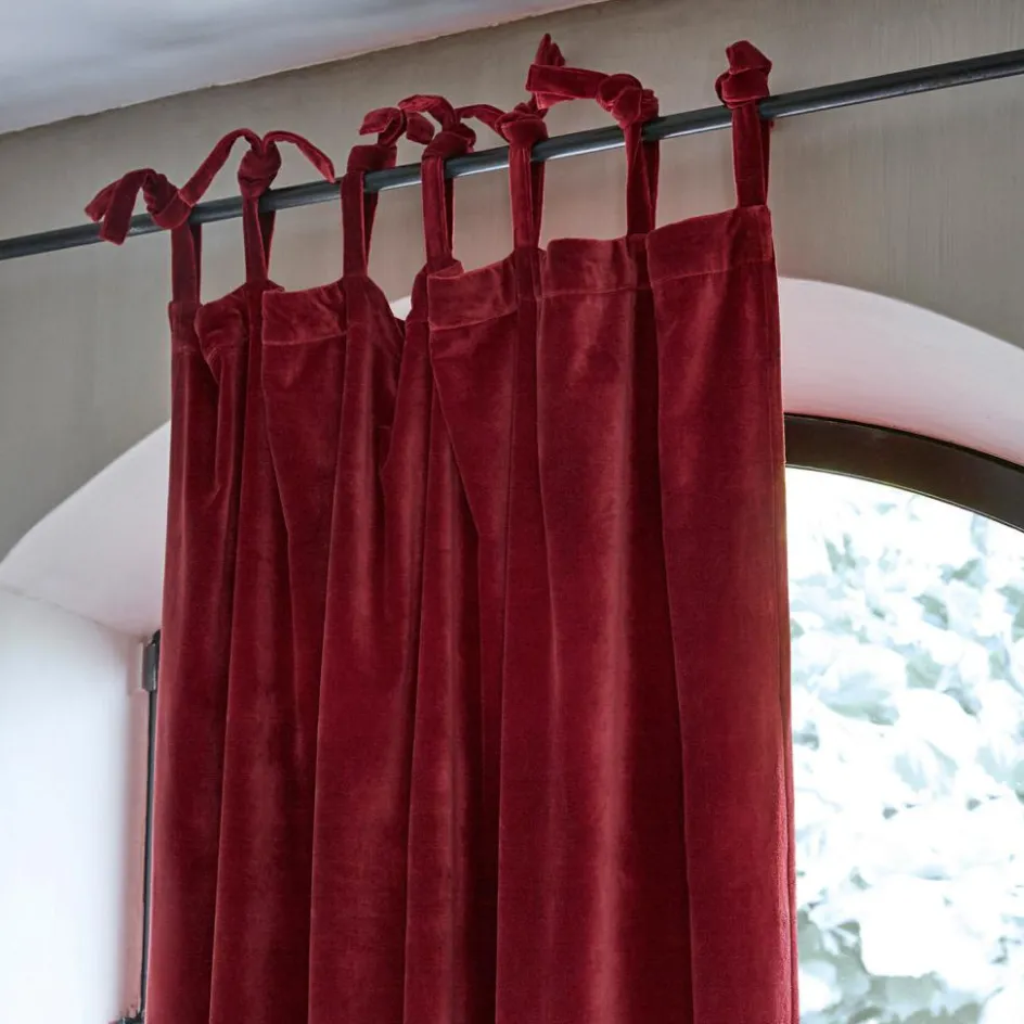 Ein Vorhang aus fein schimmerndem Samt verleiht dem Ambiente nicht nur einen warmen und gemütlichen Touch, sondern signalisiert auch Glamour pur. Dieses noble Fensterkleid ist aus hochwertigem Baumwollsamt gefertigt und bringt seine ausdrucksstarke Farbgebung mit kostbarer Brillanz zur Geltung. Sein geschmeidiger Fall ist wunderbar, zudem schützt der Vorhang vor neugierigen Blicken und verdunkelt Schlafräume mit Bravour. Mit dekorativen Bindebändern lässt sich das Textil problemlos an die Gardinenstange anbringen und zugleich in der Länge perfekt anpassen. Ein exklusiver Wohnakzent für alle, die einen etwas opulenteren Stil lieben: Mit zeitlos schönen Möbelklassikern aus Massivholz schaffen sie eine elegante Harmonie. Wohnaccessoires wie Kissen, Plaids oder Teppiche sind perfekte Begleiter und dürfen die Farbwelt des Vorhangs gerne wieder aufgreifen. Auch Ihren Einrichtungsideen im Shabby-Chic passt sich die Samtgardine ideal an und sorgt schon optisch für den gewünschten Kuschelfaktor.
