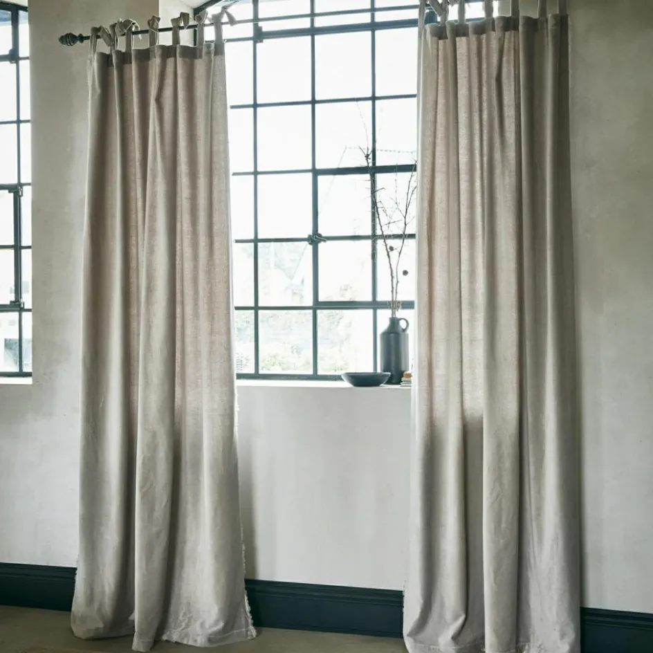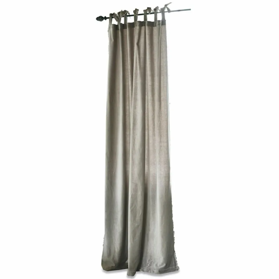 Das perfekte Accessoire für entspannte Stunden in geborgener Privatsphäre – dieser ansprechende Vorhang macht Ihr Zuhause zu einem besonders gemütlichen Ort. Er besteht aus weichem Baumwollsamt, ist blickdicht und zum Abdunkeln konzipiert. So eignet er sich bestens für das Schlafzimmer. Doch auch im Wohnzimmer können Sie sich damit so richtig einkuscheln, wenn es draußen dunkel und kalt ist. Und im Sommer schützt er vor allzuviel Wärme und sorgt dabei für eine gemütliche Lichtstimmung. Das hübsche Design ist mit reizenden Fransen sowie Bindebändern ausgestattet, die das Aufhängen ganz leicht machen. Zudem lässt sich so die Höhe leicht regulieren. Das angenehm dezente Accessoire harmoniert mit wirklich jedem Ambiente und ist ganz zeitlos – schön zum Beispiel zum Landhaus-Stil.