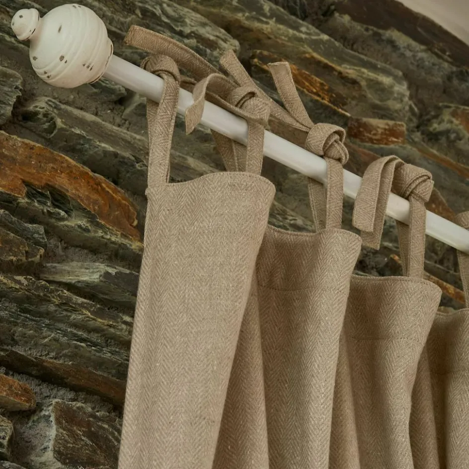 Dieser exquisite Vorhang vereint traditionelles Handwerk und modernen Stil auf harmonische Weise. Der handgewebte Tweedstoff, der durch das klassische Fischgrätmuster besticht, bringt eine warme und einladende Note in jeden Raum. Dank des hochwertigen Wollanteils fühlt sich der Vorhang nicht nur besonders luxuriös an, sondern bietet auch exzellenten Wärmeschutz und ein angenehmes Raumklima. Die blickdichte und abdunkelnde Funktion garantiert maximale Privatsphäre und ermöglicht Ihnen, jederzeit eine gemütliche Atmosphäre zu schaffen. Die eleganten Bindebänder bieten Ihnen zudem flexible Gestaltungsmöglichkeiten und setzen zusätzliche stilvolle Akzente. Ein echter Hingucker, der Ihr Zuhause in eine Oase der Behaglichkeit verwandelt.