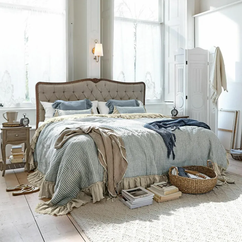 Gönnen Sie Ihrem Bett oder dem Sofa etwas Farbe! Mit diesem Kissenset aus einem leichten Mix aus Leinen und Baumwolle liegen Sie richig – und das im wahrsten Sinne des Wortes. Machen Sie es sich auf diesen Kissen richtig bequem! Die hübschen Rüschen sorgen für einen romantischen Touch und die Farben, sowie das schöne Streifenmuster, bringen etwas maritimen Chic mit. Passend zu diesem perfekt kombinierten Set empfehlen wir da Quilt 22142.