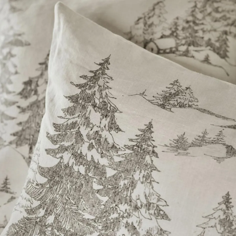 Tauchen Sie ein in die wohltuende Atmosphäre dieser exklusiven Kissenhüllen. Die Vorderseite aus reinem Leinen besticht durch ein fein gezeichnetes Landschaftsmotiv, das an ruhige Wälder und Berglandschaften erinnert. Die sanfte Haptik des Leinenstoffs verbindet sich harmonisch mit der Rückseite aus weicher Baumwolle, die Ihnen unvergleichlichen Komfort bietet. Diese Kissenhüllen sind mehr als nur ein Wohnaccessoire – sie sind ein Statement für natürlichen Stil und hochwertige Materialien. Ob auf dem Sofa, dem Bett oder Ihrem Lieblingssessel, sie setzen überall besondere Akzente und laden zum Entspannen ein.