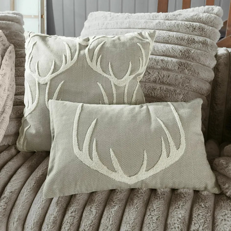 Manchmal braucht es nur ein Detail, um einem Raum Charakter zu verleihen – dieses Kissenhüllen-Set erzählt mit Textur, Muster und Motiv eine Geschichte von Naturverbundenheit und Gemütlichkeit. Der dezente Fischgrätstoff in Grau und Naturweiß bringt grafische Klarheit ins Spiel, während die weich erhabenen Hirschgeweihe in Flocktechnik wie in den Stoff hineingezeichnet wirken. Die Kombination wirkt zugleich modern und traditionell, wie eine textile Brücke zwischen Waldhütte und zeitgemäßem Wohnzimmer. In der Haptik ebenso reizvoll wie im Look, lädt dieses Set nicht nur zum Anschauen, sondern auch zum Anlehnen ein – ein kleines Highlight für alle, die Natürlichkeit stilvoll inszenieren möchten.