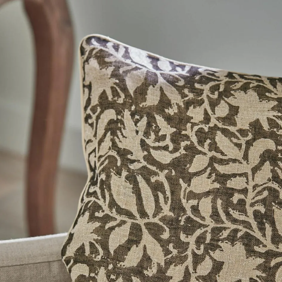 Ein harmonisches Zusammenspiel von Struktur, Haptik und Design: Diese Kissenhülle ist vorne aus charaktervollem Leinen gefertigt – das blättrige Muster wirkt darauf besonders lebendig und natürlich. Die Rückseite besteht aus angenehm glatter Baumwolle, die sich weich anfühlt und das textile Erlebnis abrundet. Dank der edlen Paspelierung erhält das Kissen zusätzlich Kontur und Eleganz. Ein dekoratives Duo, das auf Sofa, Sessel oder Tagesbett für stilvolle Abwechslung sorgt – rustikal und zugleich fein akzentuiert.