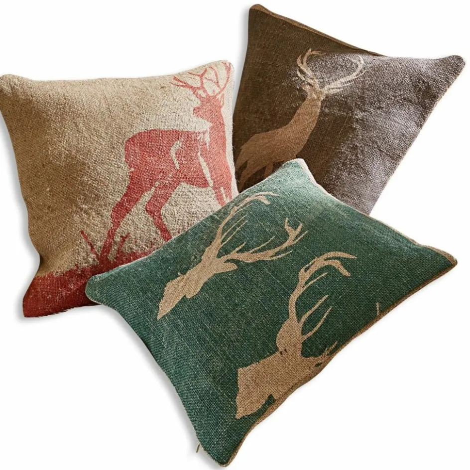 Drei ausgesprochen dekorative Kissenhüllen, die den heimeligen und gemütlichen Chalet-Chic in Ihr Zuhause zaubern. Die Hüllen bestehen aus reiner Jute und sind besonders naturnah gestaltet. Ihre rustikale Webstruktur sorgt für bodenständigen Charme. Ein verdeckter Reißverschluss ermöglicht ein leichtes Be- und Abziehen von passenden Kissen. Die aufgebrachten Drucke zeigen verschiedene Hirsch-Silhouetten, die ein wenig an Scherenschnitte erinnern. Eine gute Portion skandinavischer Charme kommt so in Ihre Räume. Einfach perfekt für den Winter! Man denkt bei ihrem Anblick an duftende Winterwälder und verschneite Bergspitzen. Ideal passen sie in ein Ambiente mit viel Holz und einem knisternden Kaminfeuer. Holen Sie sich mit diesem edlen Trio natürlichen Chic nach Hause.