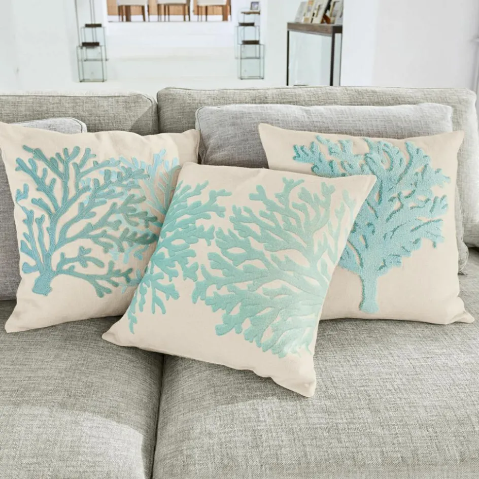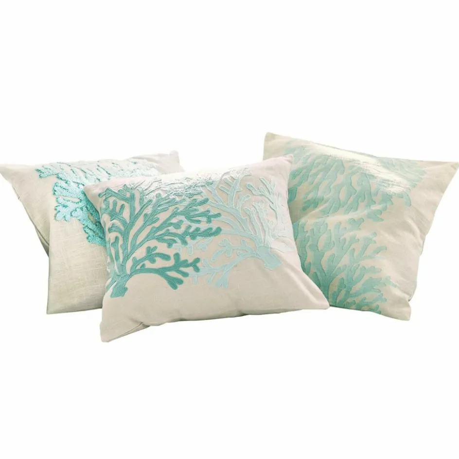 Holen Sie sich ein verträumtes Set wie aus einer Unterwasserwelt nach Hause und machen Sie es sich im Bett oder auf dem Sofa so richtig kuschelig. Hier kommt ein Trio aus sehr hübschen Kissenhüllen aus weicher, reiner Baumwolle mit teils kunstvollem 3D-Korallenmuster in sanften Tönen zu Ihnen. Es zaubert ein wunderbar maritimes Flair wie an der Küste zu Ihnen und sorgt so jederzeit für Ferienlaune. Die angenehme Farbkomposition schmeichelt jedem Interieur und holt in jeder Saison den Sommer zu Ihnen nach Hause. Hiermit werden ganz normale Kissen (exklusiv) zu echten Deko-Lieblingen mit charmantem Charakter. Die hübschen Hüllen sind waschbar, sodass sie immer frisch und duftig bleiben.
