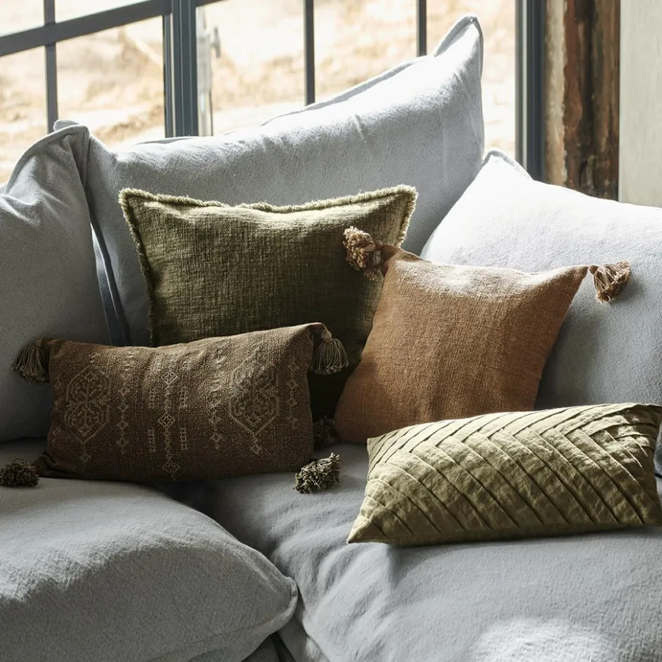 Dekorieren kann so viel Spaß machen. Das gelingt Ihnen garantiert auch mit diesem Kissenhüllen-Set in vier unterschiedlichen Designs – ein reizvolles Spiel mit Texturen, Farben und Materialien. Jedes dieser Bezüge ist mit besonderen Stilelementen wie Fransen, Tasseln, Biesen und Stickereien veredelt. Hinzu kommen die unterschiedlichen Größen, die das Gesamtbild noch spannender machen. Die Vorderseite besteht aus einem hochwertigen Leinengemisch, die Rückseite aus natürlichem Baumwollgewebe. Alle Hüllen verfügen über einen praktischen Reißverschluss. Ein harmonisch abgestimmtes Deko-Quartett, mit dem Sie überzeugende Akzente setzen können – in jedem Interieur. Die Couch oder das Bett verwandeln sie im Handumdrehen zu einer behaglichen Wohlfühl-Insel. Natürlich können die Kissen auch als Solisten gezielt zum Einsatz kommen – so werden beispielsweise der Korbsessel im Erker oder die Holzbank im Entree optisch besonders hervorgehoben und erhalten mehr Gemütlichkeit. Wählen Sie einfach die Wirkung, die Ihnen am besten gefällt.