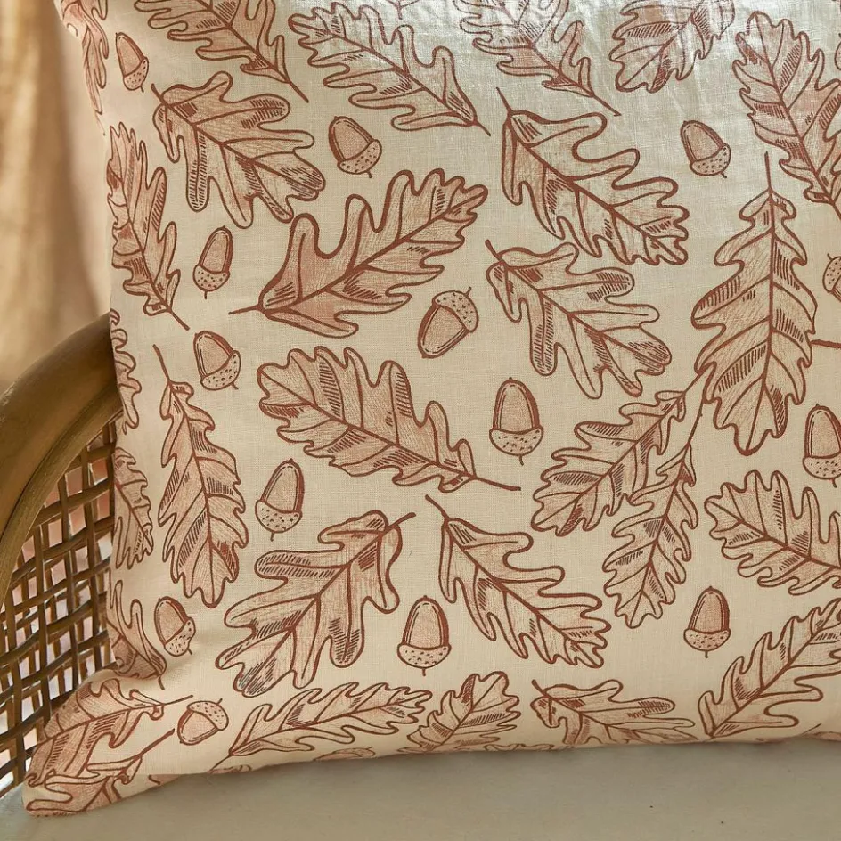 Herbstzauber für gemütliche Abende im Wohnzimmer oder auf der Terrasse. Die einzigartigen Blätter und Früchte des Eichelbaumes inspirierten zu diesem stimmungsvollen Druck. Auch die Materialwahl geht zurück zur Natur. Das reine Leinengewebe begeistert mit charaktervoller Struktur, ist angenehm im Griff und strapazierfähig. Eine Knopfleiste auf der Rückseite dient als Verschluss und rundet die Kissenhülle ab. Ein hübscher Wohnakzent, der Ihre Lieblingsplätze saisonal aufpeppt und zum Kuscheln einlädt. Mit dem Skandi-Chic oder Landhaus-Stil harmoniert das Accessoire besonders schön.
