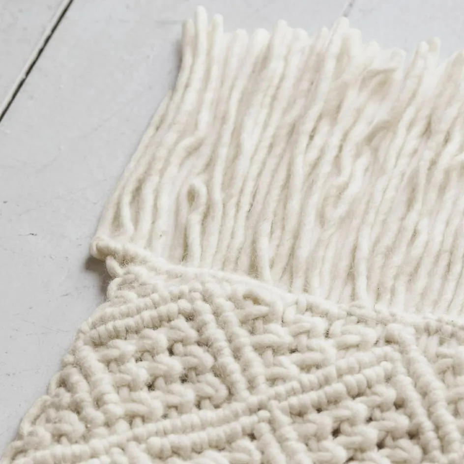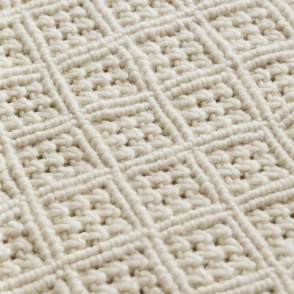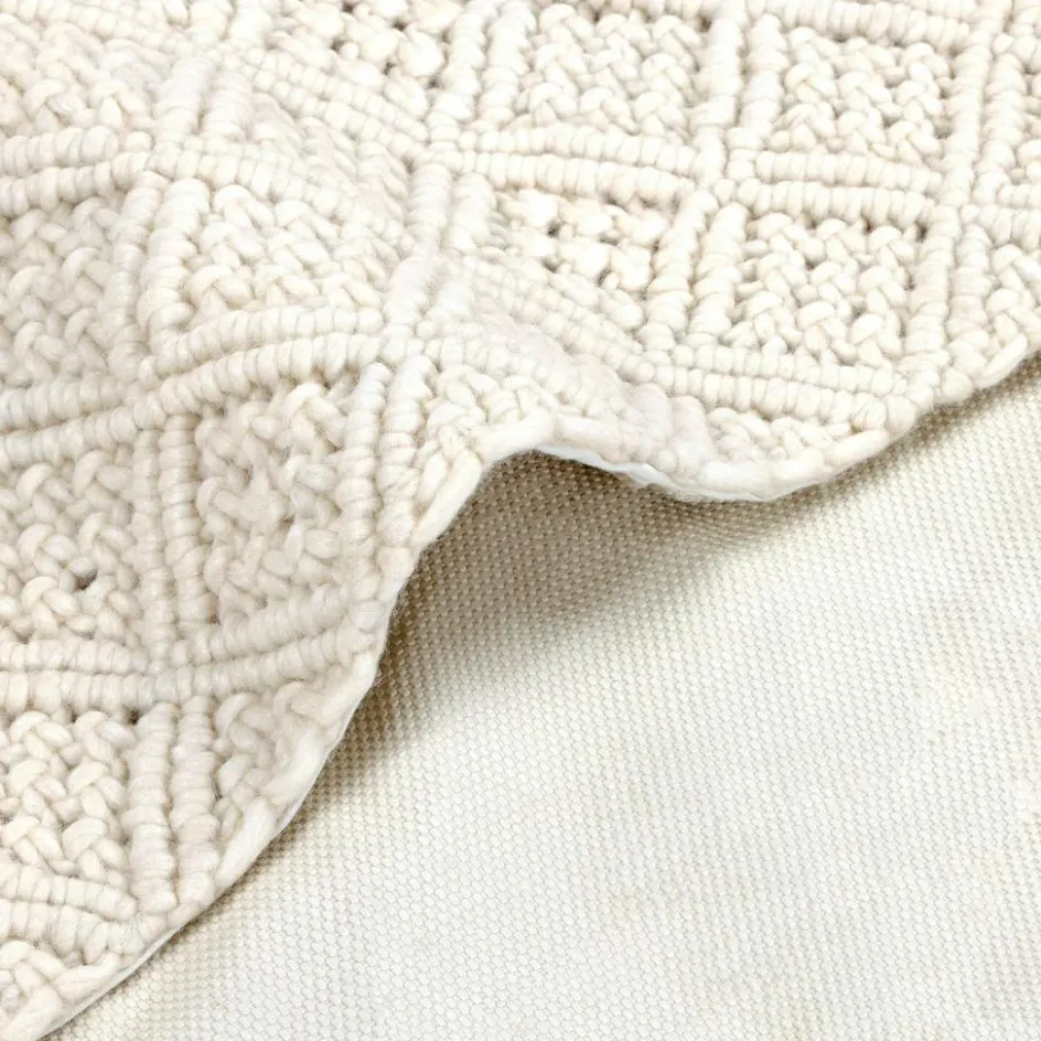 Dieser zauberhafte Teppich ist ein echtes Schmuckstück in wunderschöner Makramee-Optik. Er ist von Hand geknüpft und besteht auf der Oberseite aus weicher, reine Wolle. Das werden Ihre Füße definitiv zu schätzen wissen. Die Unterseite ist aus einem Mix aus Baumwolle und Latex, und damit rutschfest. Das charmante Aussehen des Teppichs mit den langen Fransen und dem wunderhübschen Muster passt perfekt zum Boho-Look oder auch zu einem orientalischen Ambiente. Dieser hochwertige und stilvolle Teppich ist angenehm weich unter den Füßen und macht Ihr Zuhause so richtig gemütlich, ob am Bett oder im Wohnzimmer platziert.