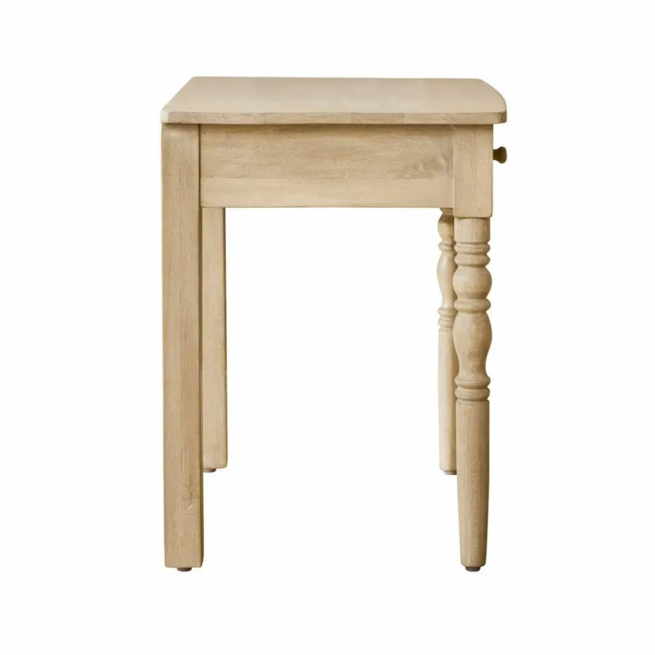 Dieser Kinderschreibtisch vereint Funktionalität und Design auf eindrucksvolle Weise. Aus hochwertigem Mangoholz gefertigt und mit einem zarten Antikgrau-Finish versehen, bringt er einen Hauch von Vintage-Flair in jeden Raum. Die liebevoll gedrechselten Beine zeugen von klassischer Handwerkskunst und verleihen dem Möbelstück eine stilvolle Optik. Eine geräumige Schublade bietet Platz für alle wichtigen Utensilien, sei es für kreative Bastelstunden oder die ersten Hausaufgaben. Ideal für das Kinderzimmer, fügt sich der Schreibtisch dank seines schlichten und dennoch ausdrucksstarken Designs harmonisch in verschiedenste Einrichtungsstile ein.