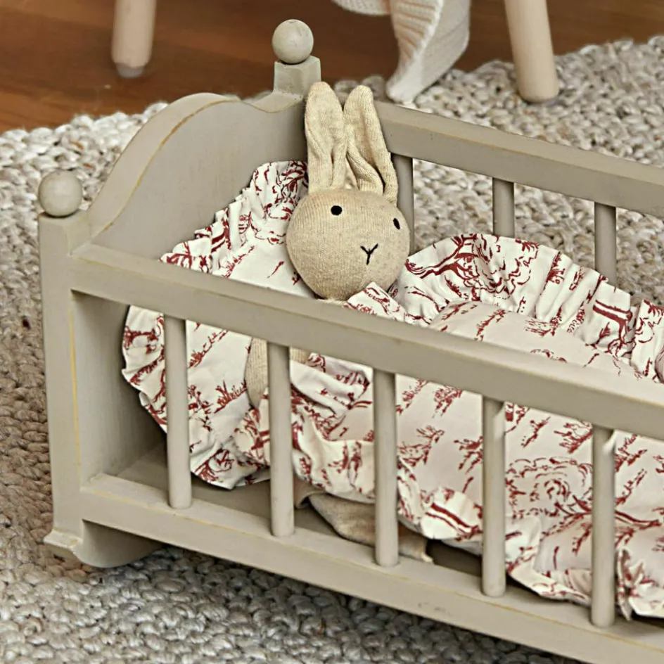 Die Puppenwiege ist ein bezauberndes Accessoire für das Kinderzimmer und lädt zu stundenlangem Spielen ein. Gefertigt aus massivem Holz und veredelt mit einem matten Antikgrau-Finish, strahlt sie zeitlose Gemütlichkeit aus. Die klassische Form mit den dekorativen Rundungen und stabilen Sprossen lässt nostalgische Erinnerungen wach werden und passt hervorragend zu verschiedenen Einrichtungsstilen. Ob als Schlafplatz für die Lieblingspuppe oder als Dekorationselement im Kinderzimmer – die Wiege bringt Charme und Freude in den Alltag. Für zusätzliche Gemütlichkeit kann passende Puppenbettwäsche separat erworben werden.