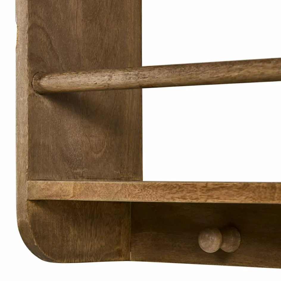 Verleihen Sie Ihrem Zuhause einen Hauch von Natürlichkeit und Funktionalität mit diesem wunderschönen Wandregal aus Mangoholz. Das dezente White-Washed-Finish betont die natürliche Maserung des Holzes und verleiht dem Regal einen charmanten, rustikalen Look. Dank seines durchdachten Designs bietet es vielseitige Aufbewahrungsmöglichkeiten: Hängen Sie Handtücher im Bad, verstauen Sie Spielsachen im Kinderzimmer oder nutzen Sie es in der Küche für Ihre Kochutensilien. Die klaren Linien und die warme Farbgebung machen dieses Regal zu einem echten Blickfang in jedem Raum, während es gleichzeitig für Ordnung und Übersicht sorgt.