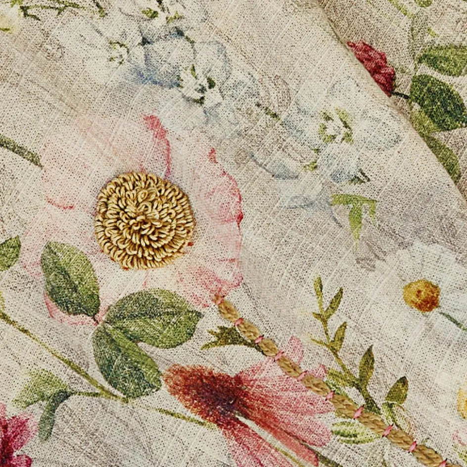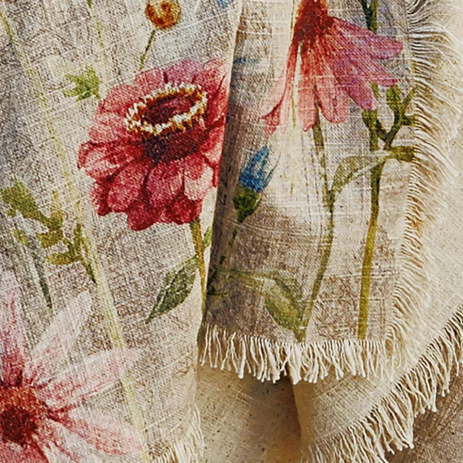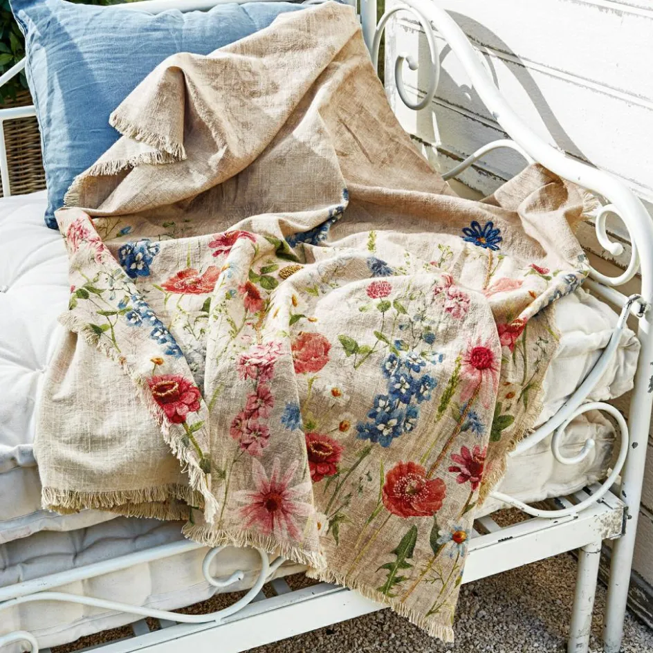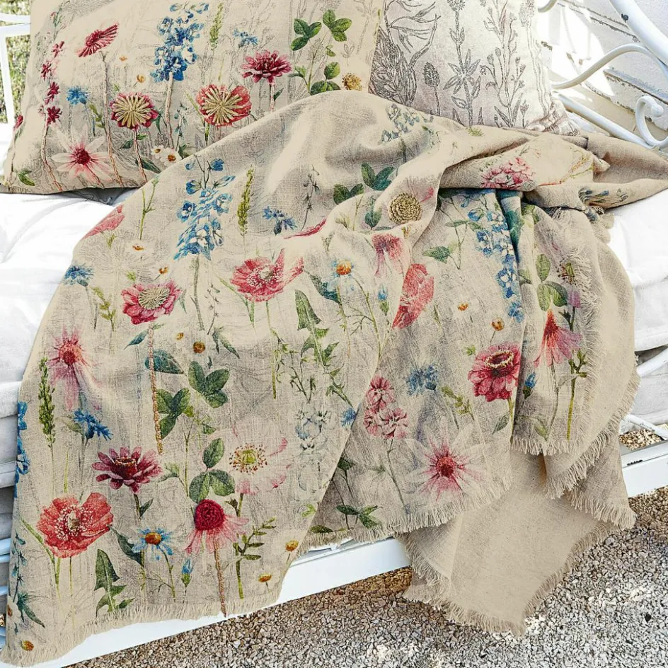 Dieses bezaubernde, leichte Plaid aus reinem Leinen ist fein von Hand bestickt und mit einem sehr detailreichen, floralen Digitaldruck verziert. Dazu hat er an den schmalen Seiten noch hübsche Fransen. Freuen Sie sich auf ein üppiges Blumenparadies, welches einfach gute Laune versprüht und zum Beispiel gut zum Landhaus-Stil passt. Auf der Gartenliege, beim Picknick im Park oder natürlich auch als Überwurf für Bett oder Sofa ist dieses wertvolle und sehr dekorative Plaid eine wahre Freude. Auch könnten Sie es sich um die Schultern legen, um nachts unter freiem Himmel an langen Sommernächten die Sterne zu beobachten. Das reizende Schmuckstück ist eine wahre Freude für das Auge und zaubert das ganze Jahr über blumigen Charme zu Ihnen. Reines Leinen wirkt übrigens von Natur aus kühlend, sodass das Plaid im Sommer sehr angenehm in der Haptik ist.