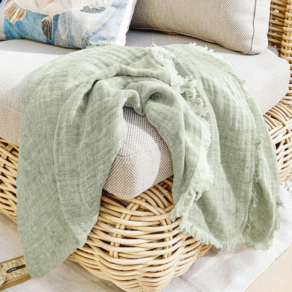 Dieses hübsche Plaid besteht aus reinem Leinen und ist angenehm leicht. Das feine Gewebe kühlt ganz natürlich, was an warmen Tagen eine Freude ist. Das schön gewebte Melange-Muster auf der Ober- und Unterseite gibt dem edlen Plaid eine besondere Note. Dabei ist die Farbintensität auf beiden Seiten unterschiedlich, sodass das Plaid nach Belieben immer in einem neuen Look erscheint. Dazu zieren das Plaid auch noch schmale Fransen. Als Unterlage auf der Sonnenliege, wie eine Picknickdecke genutzt, als Überwurf auf dem Sofa oder in lauen Nächten um die Schultern gewickelt, während Sie draußen die Sterne anschauen, dieses schöne Design ist absolut multifunktional und ziert jedes Ambiente charmant.