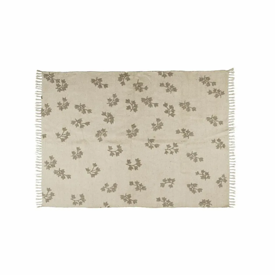 Ein Teppich, der nicht nur Komfort, sondern auch handwerkliche Schönheit in Ihr Zuhause bringt. Gefertigt aus einer weichen Wollmischung bietet er ein luxuriöses Gefühl unter den Füßen und besticht durch seine feine, flach gewebte Struktur. Das charmante, handbestickte Blattmuster fügt einen Hauch von Naturverbundenheit hinzu und lässt sich mühelos in unterschiedliche Einrichtungsstile integrieren. Mit seinen dezenten Farben und dem traditionellen Handwerk sorgt dieser Teppich für ein wohliges Ambiente in jedem Raum.