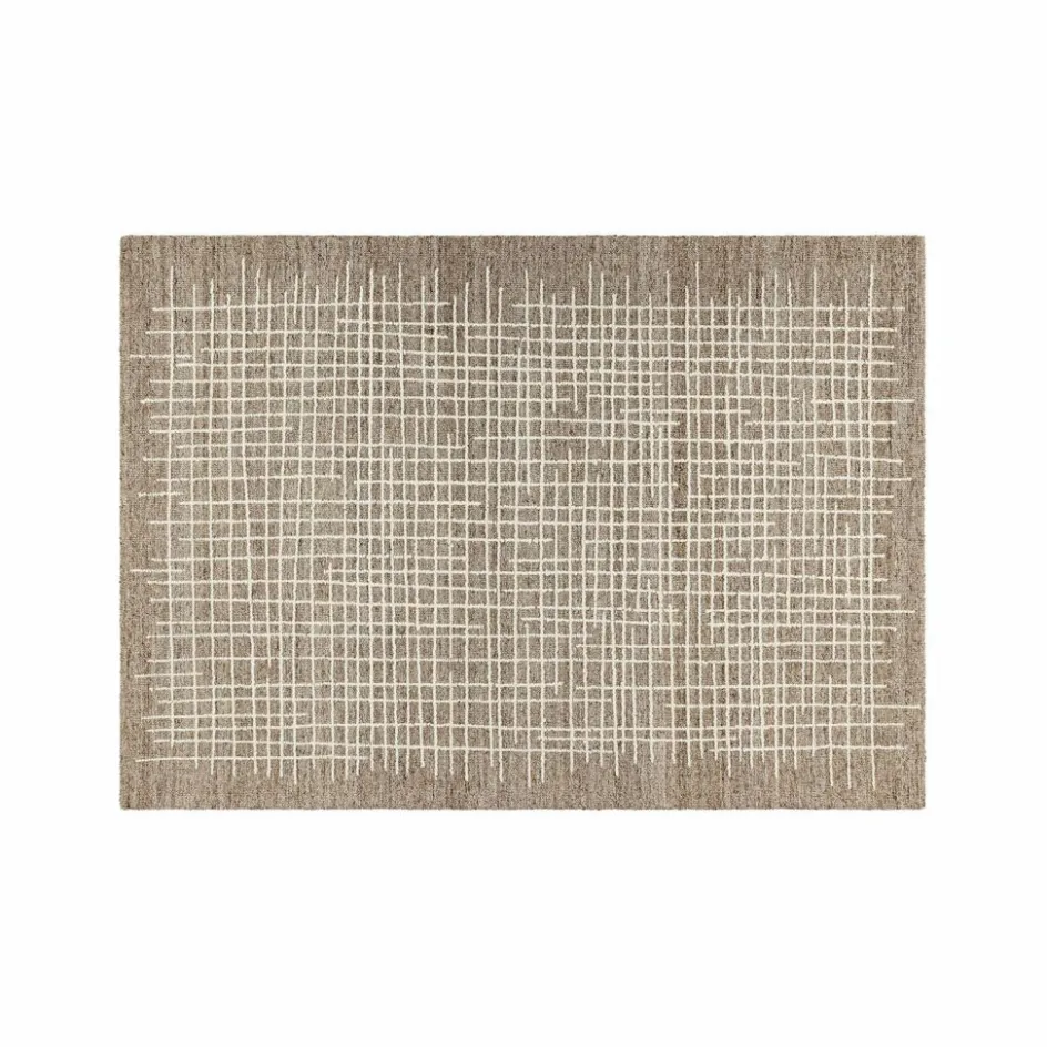 Ein Teppich mit Charakter: Die griffige Oberfläche ist von kleinen, unregelmäßig geformten Wollnoppen durchzogen – eine haptisch lebendige Struktur, die an handmodellierte Kiesel erinnert. Dazu ein modernes Rastermuster in ruhiger Farbgebung, das sich harmonisch in unterschiedliche Wohnstile einfügt. Die Rückseite überrascht mit einem besonders soften Finish, das auf empfindlichen Böden schont und auf kalten Flächen für angenehme Wärme sorgt. Und als Sahnehäubchen lässt sich dieser handgetuftete Wollteppich bei Bedarf einfach waschen – für Alltag und Anspruch gleichermaßen gemacht.