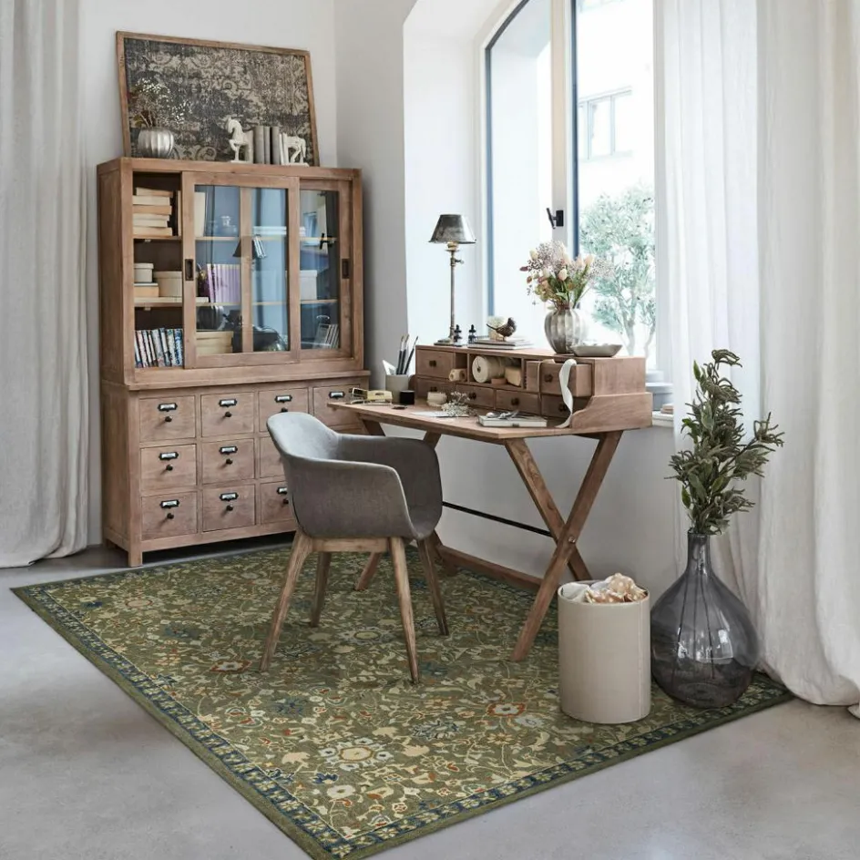 Traditionelle Muster aus dem Orient dienten als Vorlage für diesen hochwertigen Vintage-Teppich, der durch die trendige Farbgebung eine äußerst moderne Ausstrahlung erhält. Er ist handgetuftet aus reiner Wolle – und verwöhnt neben einem angenehm weichen Flor auch mit wohliger Wärme. Sorgfältig eingefasste Kanten unterstreichen den noblen Gesamteindruck. Ein wohnliches Naturprodukt, das alle Blicke auf sich zieht und herrlich behaglichen Komfort schenkt – ob im Wohnbereich, im Schlafzimmer oder im Flur. Dank seiner verschiedenen Größen, in denen er erhältlich ist, passt sich der Teppich jeder Raumsituation an. Am schönsten in einem ländlichen Ambiente.