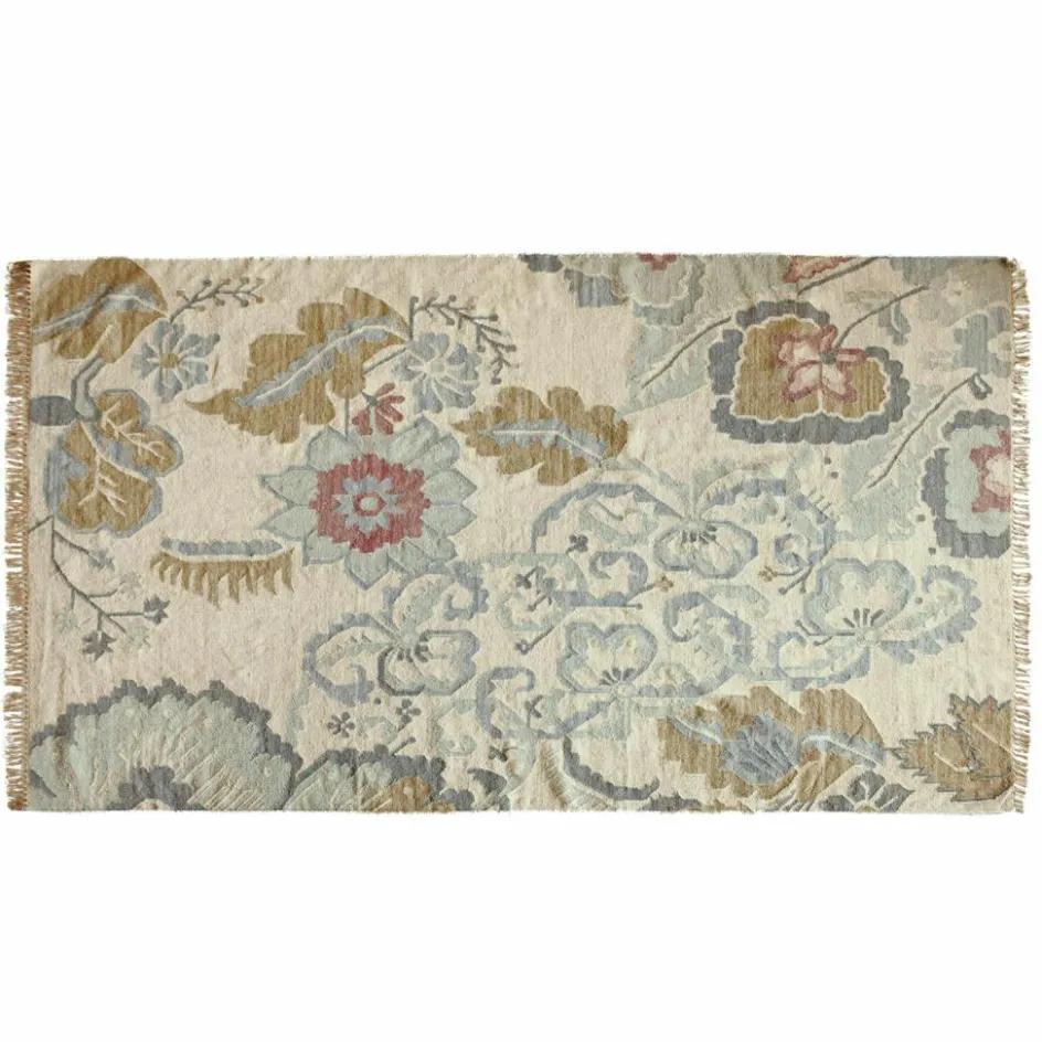 Der handgewebte Teppich aus einem robusten Woll-Baumwoll-Mix überzeugt mit einer besonders hochwertigen Verarbeitung, einem modernen Blumenmuster und einer kombinationsstarken, pastelligen Farbgebung. So wird der große Teppich mit Unikat-Charakter im Handumdrehen zu einem individuellen Hingucker in Ihrem Ess- oder Wohnzimmer. Die Fransen an den beiden kurzen Enden unterstreichen noch den charmanten Look. Das zurückhaltende und dennoch moderne Design passt zu absolut jeder Einrichtungsidee und jedem Stil.