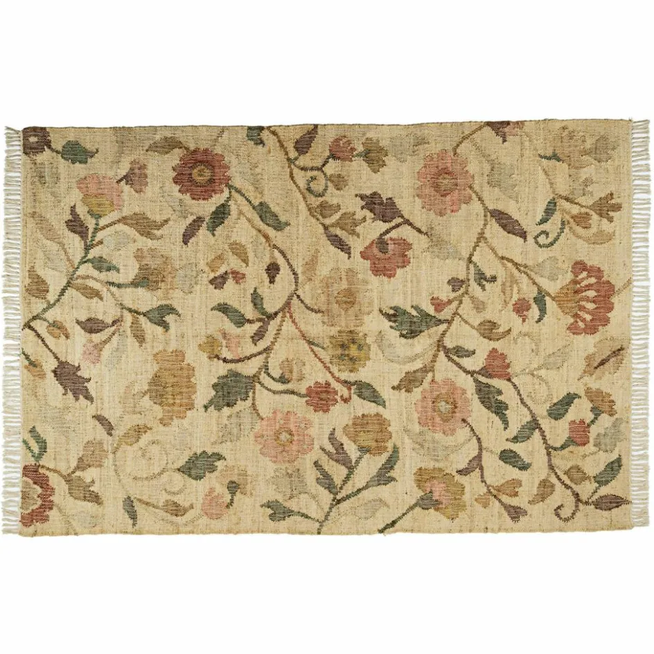 Verwandeln Sie Ihren Wohnraum in eine Oase der Gemütlichkeit mit diesem wunderschönen Teppich. Sorgfältig handgewebt, vereint er traditionelle Handwerkskunst mit zeitloser Schönheit. Die Kombination aus Jute und Baumwolle sorgt für eine robuste, langlebige Struktur, die gleichzeitig sanft unter den Füßen ist. Das bezaubernde Blumenmuster in sanften, erdigen Tönen bringt natürliche Eleganz in jeden Raum. Da die Farben aufgrund der Naturmaterialien leicht abweichen können, erhalten Sie mit diesem Teppich ein wahres Einzelstück, das Ihre individuelle Einrichtung perfekt unterstreicht. Ob im Wohnzimmer, Schlafzimmer oder Eingangsbereich – dieser Teppich ist ein Highlight, das jeden Raum bereichert.