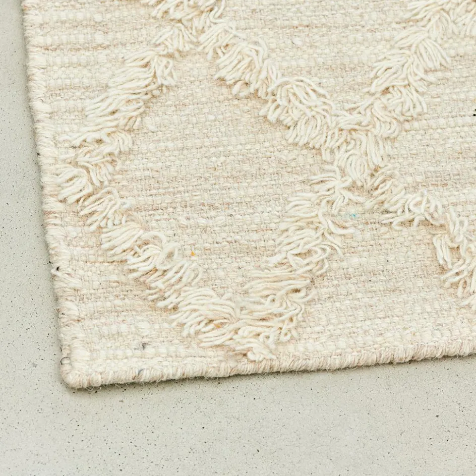 Ein behaglicher Wohnstil besteht nicht nur aus warmen Holzmöbeln, Grünpflanzen und ein paar Lieblingskissen auf der Couch – auch kuschelige Teppiche gehören unbedingt dazu. Denn damit werden Ihre Wohlfühlplätze zu Hause noch ein bisschen schöner und gemütlicher. Das erfüllt auch dieser dekorative Hingucker aufs Beste. Hochwertig aus reiner Wolle gewebt trifft er den Puls der Zeit – denn natürliches Wohnen ist der neue Trend. Das erhabene Rautenmuster prägt den modisch getufteten Look und sorgt für die herrlich weiche Haptik. Wenn Sie gerne barfuß durch Ihre Wohnung laufen, werden Sie diesen Wollteppich lieben. Auf rustikalen Dielenböden, elegantem Parkett oder kühlen Fliesenböden sieht das Textil gleichermaßen gut aus und gibt besonders großen Räumen optisch mehr Struktur. In sanftem Naturton verleiht der Teppich eine warme Atmosphäre und trägt trotzdem zu einer wunderbaren Leichtigkeit bei. So fühlt er sich mit jedem angesagten Lifestyle verbunden – ob klarliniger Scandinavian-Look, moderner Country-Chic oder cooler Bohemian-Style.