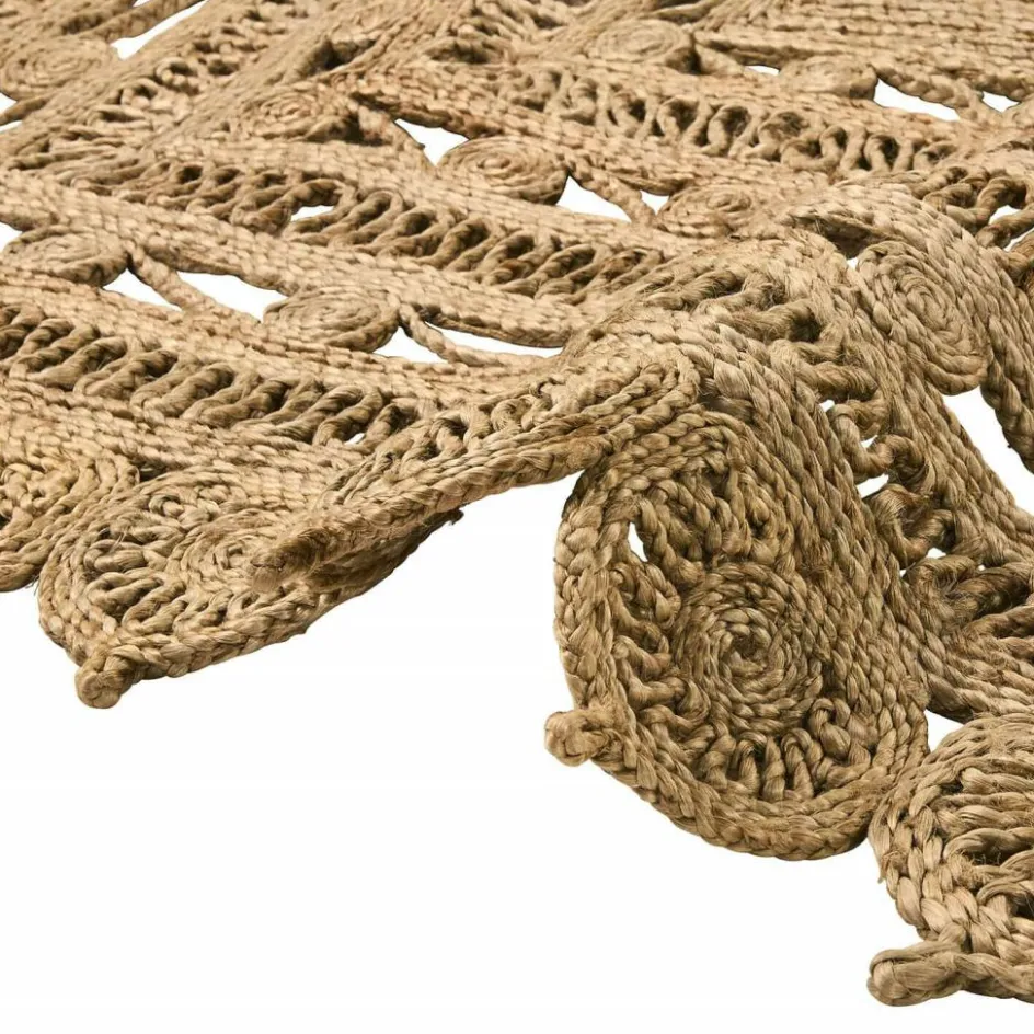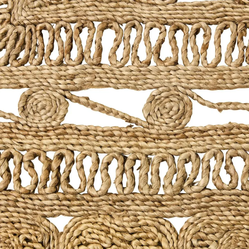 Freuen Sie sich auf ein außergewöhnliches Design, das jede Menge Boho-Charme versprüht. Der wertvolle Teppich besteht aus natürlicher und von Hand gehäkelter Jute. Er bezaubert mit seiner runden, harmonischen Form und dem aufwendigen Muster. Dieses Schmuckstück adelt wirklich jeden Raum und auch Balkon und Terrasse, die dafür überdacht sein sollten. Erleben Sie hiermit das entspannte Flair einer eleganten Finca auf Ibiza und holen Sie sich ein Gefühl wie im Urlaub nach Hause. So erleben Sie in jeder Saison einen sehr dekorativen Akzent mit Vintage-Charakter, der Ihrem Ambiente eine gemütliche und ganz besondere Note verleiht.