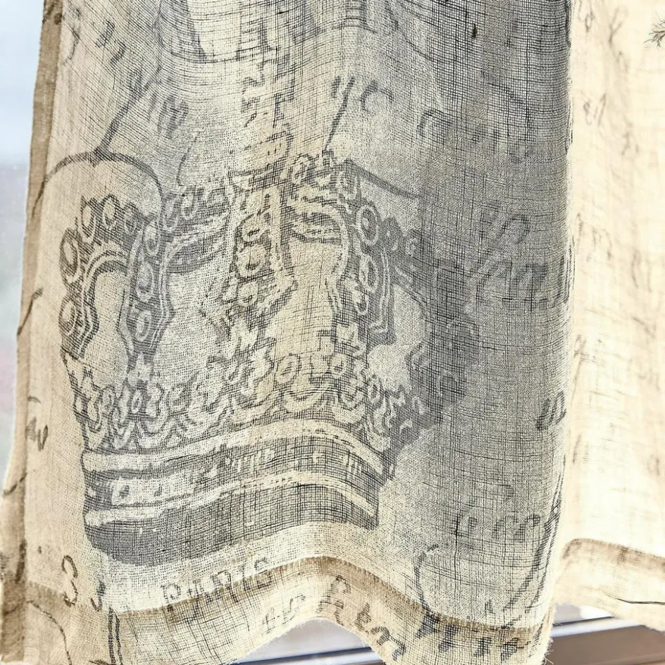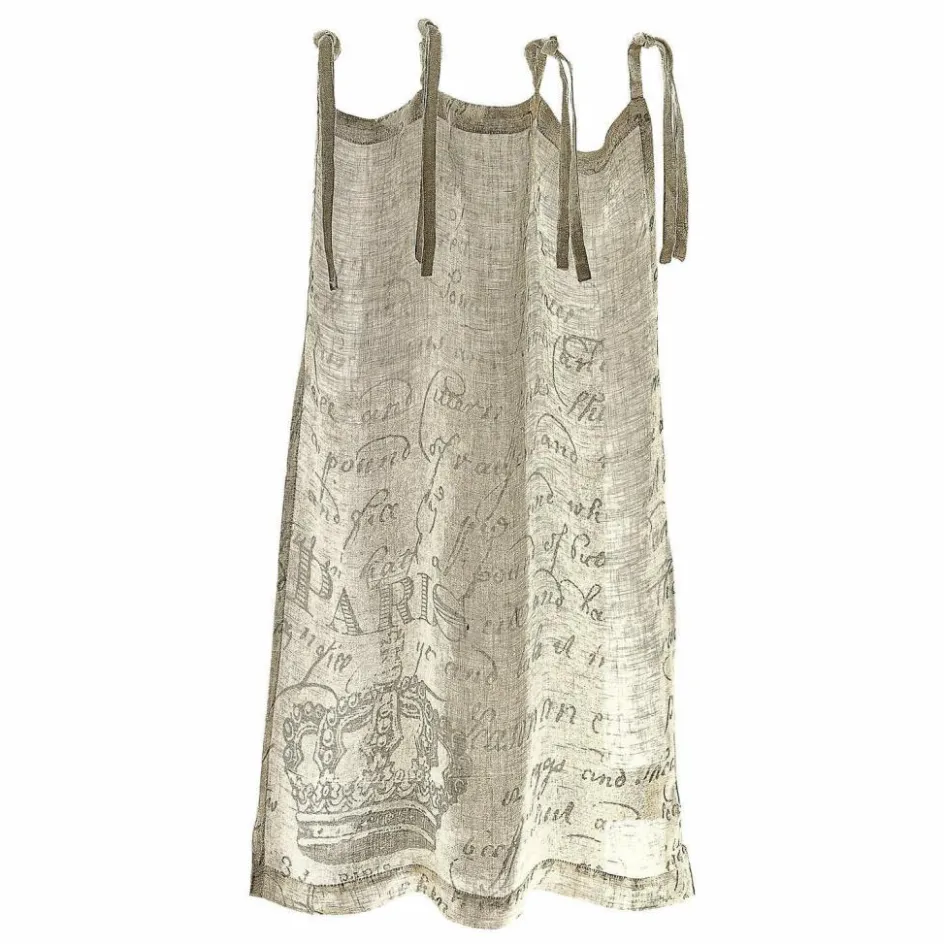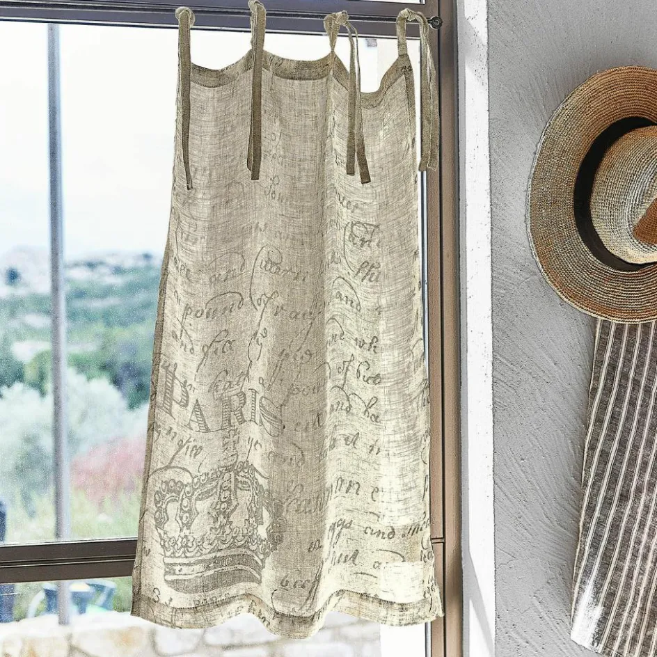 Diese Scheibengardine verleiht jedem Raum ein unverwechselbares Flair. Der hochwertige Leinenstoff beeindruckt mit seiner natürlichen Struktur und unterstreicht den charmanten Vintage-Charakter. Die detailreiche Gestaltung mit geschwungenen Schriftzügen und einer dekorativen Krone erzählt eine nostalgische Geschichte, die von französischem Charme inspiriert ist. Die praktischen Bindebänder machen das Anbringen spielend leicht und sorgen für einen lockeren, individuellen Look. Ob in der Küche, im Wohnzimmer oder im Wintergarten – dieses textile Kunstwerk schafft eine harmonische Verbindung aus Funktionalität und stilvollem Design.