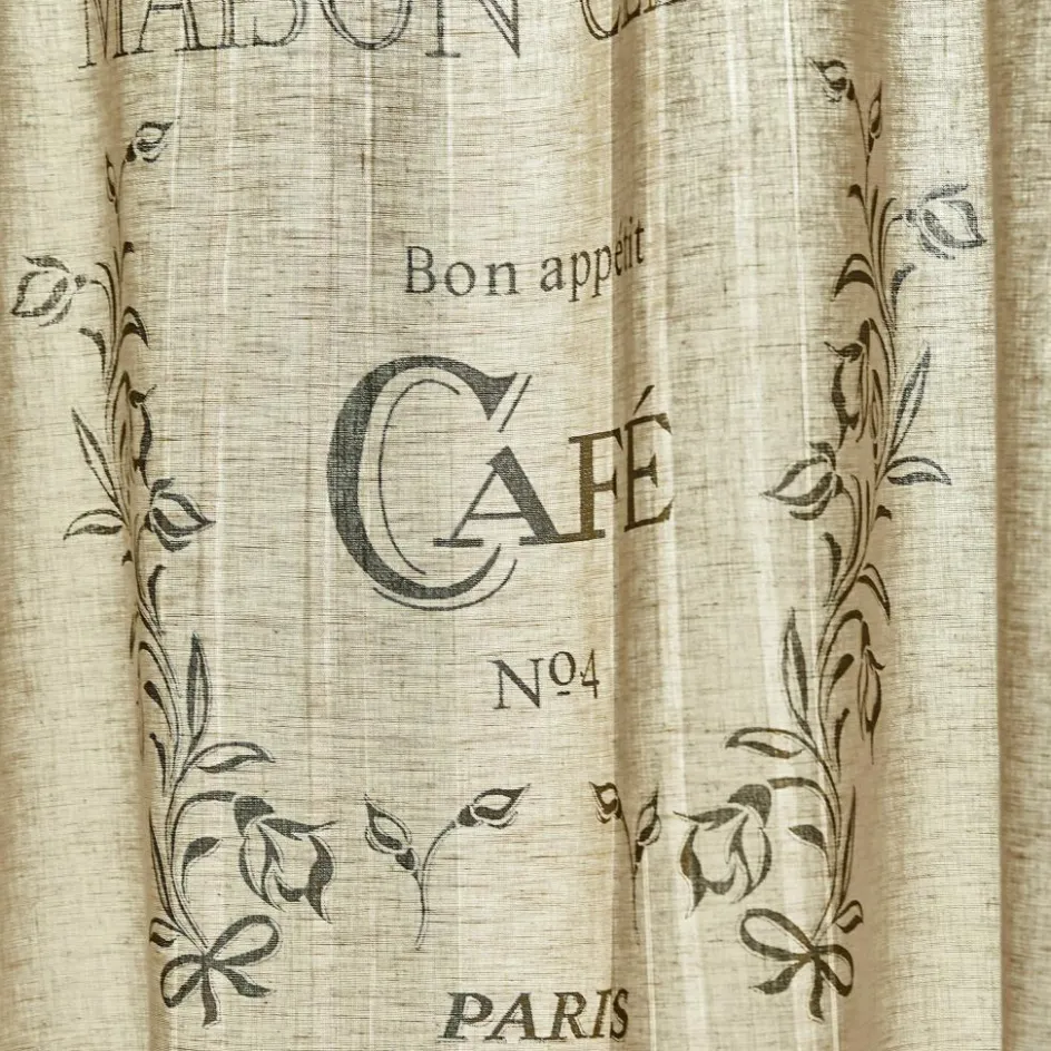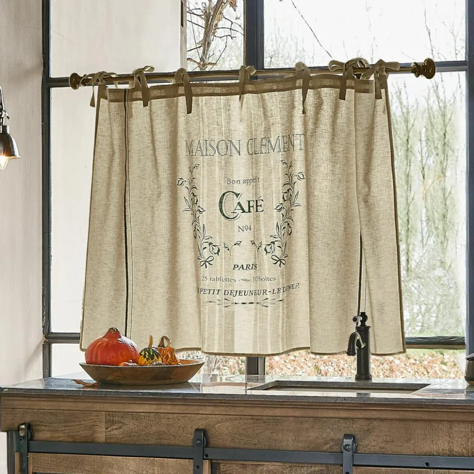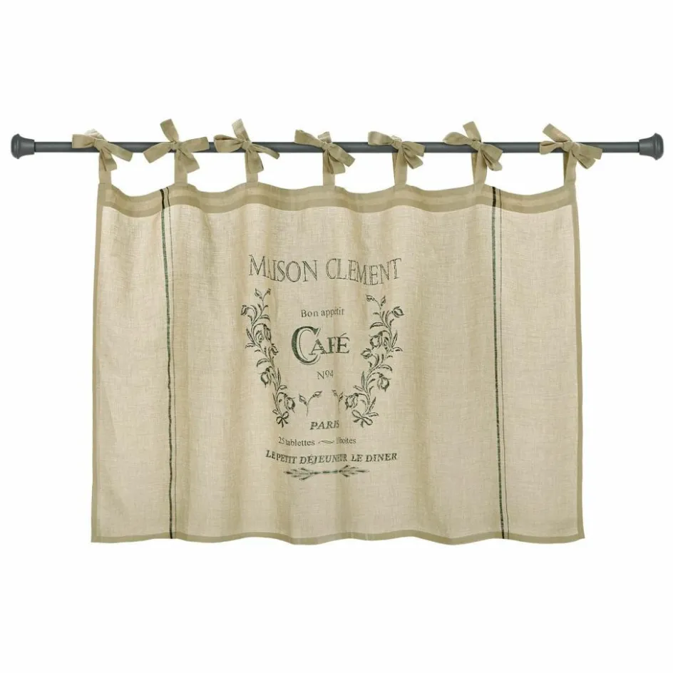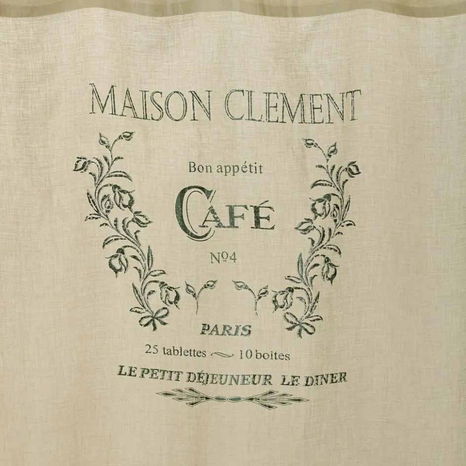 Holen Sie sich mit dieser charmanten Scheibengardine ein Stückchen Frankreich nach Hause. Sie besteht aus reinem Leinen mit einem feinen, französischen Print. Das wunderhübsch nostalgische Design bezaubert mit seinem authentisch verblassten Schriftzug, wodurch es wirklich wie aus früheren Tagen erscheint.. Diese schicke Gardine macht besonders in der Küche eine sehr gute Figur, wo sie für einen dezenten Sichtschutz wie auch für einen sehr dekorativen Effekt sorgt. Hiermit wird Ihr Heim umso schöner und gemütlicher. An den hübschen Bindebändern lässt sie sich ganz leicht befestigen, sodass Sie sich gleich daran erfreuen können.