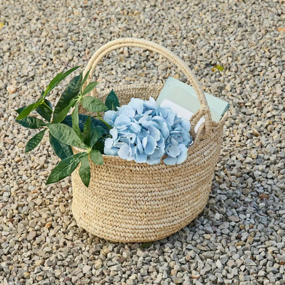 Mit seinem hellen, luftigen Geflecht bringt dieser Korb eine warme und naturverbundene Note in den Alltag. Die Kombination aus stabilem Rattan und feinen Palmenfasern verleiht ihm nicht nur Charakter, sondern auch bemerkenswerte Formbeständigkeit. Sein geräumiges Inneres eignet sich zum Verstauen von Decken, Zeitschriften oder Einkäufen, während die stabilen Henkel für einen einfachen Transport sorgen. Ob als dekoratives Element im Wohnzimmer, als praktischer Begleiter für den Marktbesuch oder als Aufbewahrungslösung im Flur – dieses zeitlose Flechtwerk überzeugt durch seine schlichte Schönheit und seine zuverlässige Stabilität.