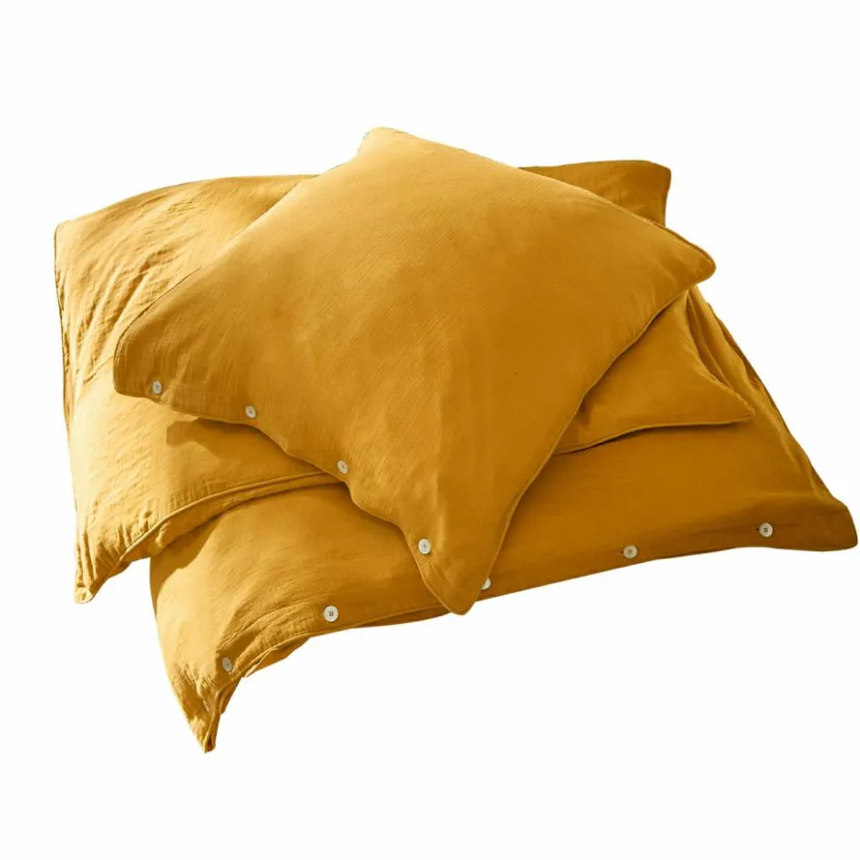 Tauchen Sie ein in die gemütliche Welt dieser wunderschönen Bettwäsche in einem ansprechenden Ockerton. Die sanfte, weiche Baumwollstruktur umhüllt Sie in wohliger Wärme und sorgt für höchsten Schlafkomfort. Die leichte Knitteroptik verleiht der Bettwäsche eine entspannte, lässige Eleganz, die jedes Schlafzimmer in eine stilvolle Wohlfühloase verwandelt. Gefertigt aus 100% Baumwolle, ist diese Bettwäsche nicht nur ein optisches Highlight, sondern auch ein Garant für behagliche und erholsame Nächte.