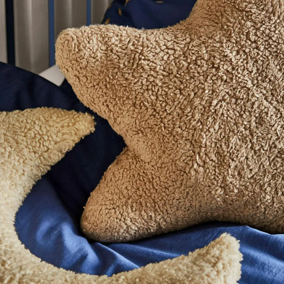 Wenn der Tag zur Ruhe kommt und das Kinderzimmer in sanftes Licht getaucht ist, werden Mond und Stern zum liebsten Rückzugsort. Das kuschelige Duo besteht aus zwei Kissen in symbolträchtigen Formen – einem freundlichen Halbmond in Cremeweiß und einem charmanten Stern in zartem Sandton. Ihre flauschige Oberfläche aus Baumwolle lädt zum Anlehnen, Einkuscheln und Festhalten ein. Sie fügen sich nicht nur optisch harmonisch in jede Einrichtung ein, sondern schenken Geborgenheit, wenn kleine Träumer auf große Abenteuer im Traumland gehen. Ideal auch als Geschenk zur Geburt oder für gemütliche Leseecken mit Himmelsblick.