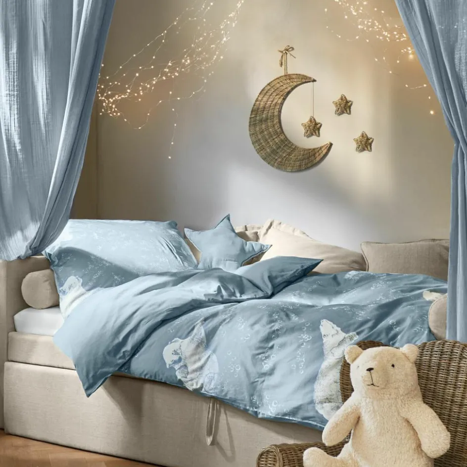 Verleihen Sie dem Kinderzimmer einen Hauch von Magie mit diesem bezaubernden sternförmigen Kissen. In einem zarten Blauton gehalten, bietet es nicht nur optische Freude, sondern auch kuschelige Haptik dank der reinen Baumwolle. Die weiche Textur und die ansprechende Form machen es zum perfekten Begleiter für gemütliche Stunden, fantasievolle Spiele und erholsame Ruhepausen. Dieses Kissen wird schnell zum Lieblingsstück im Kinderzimmer, das Geborgenheit und Träume vereint.