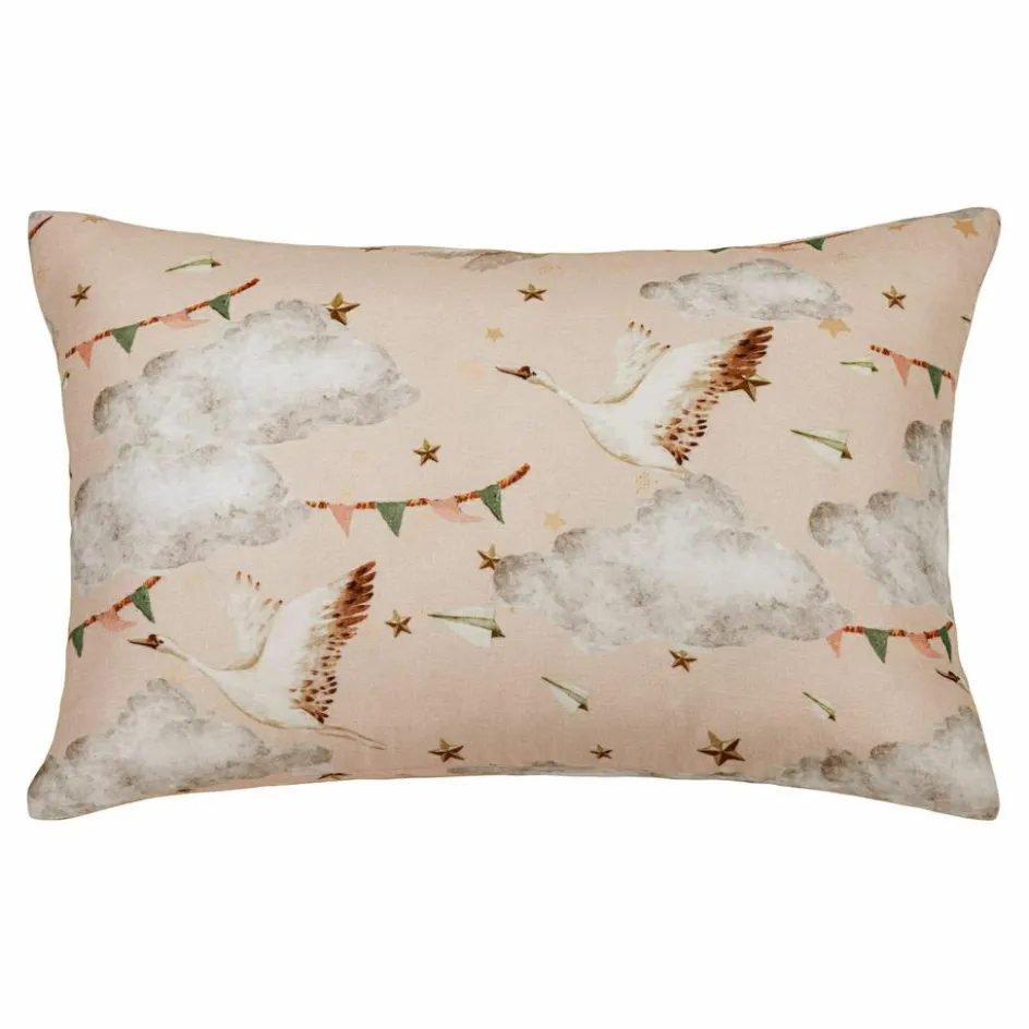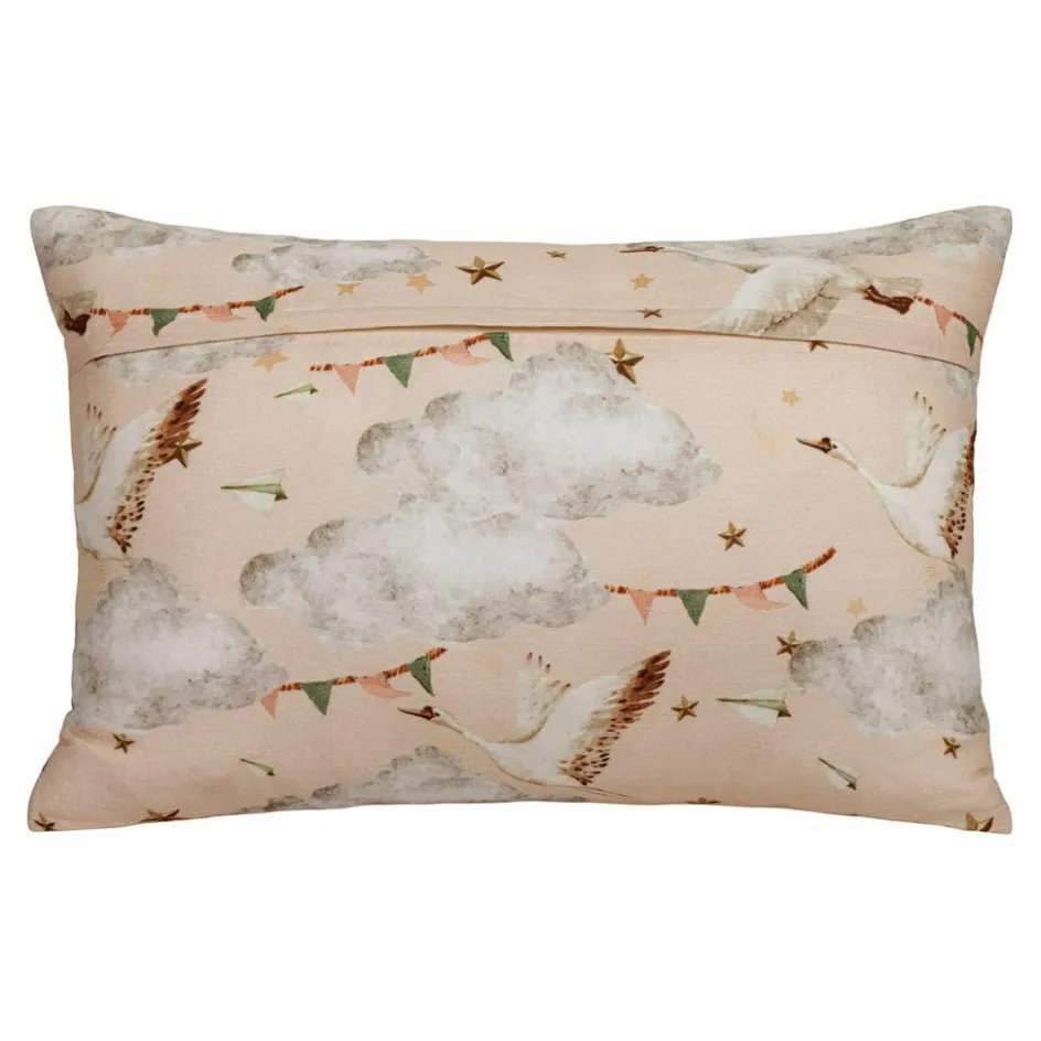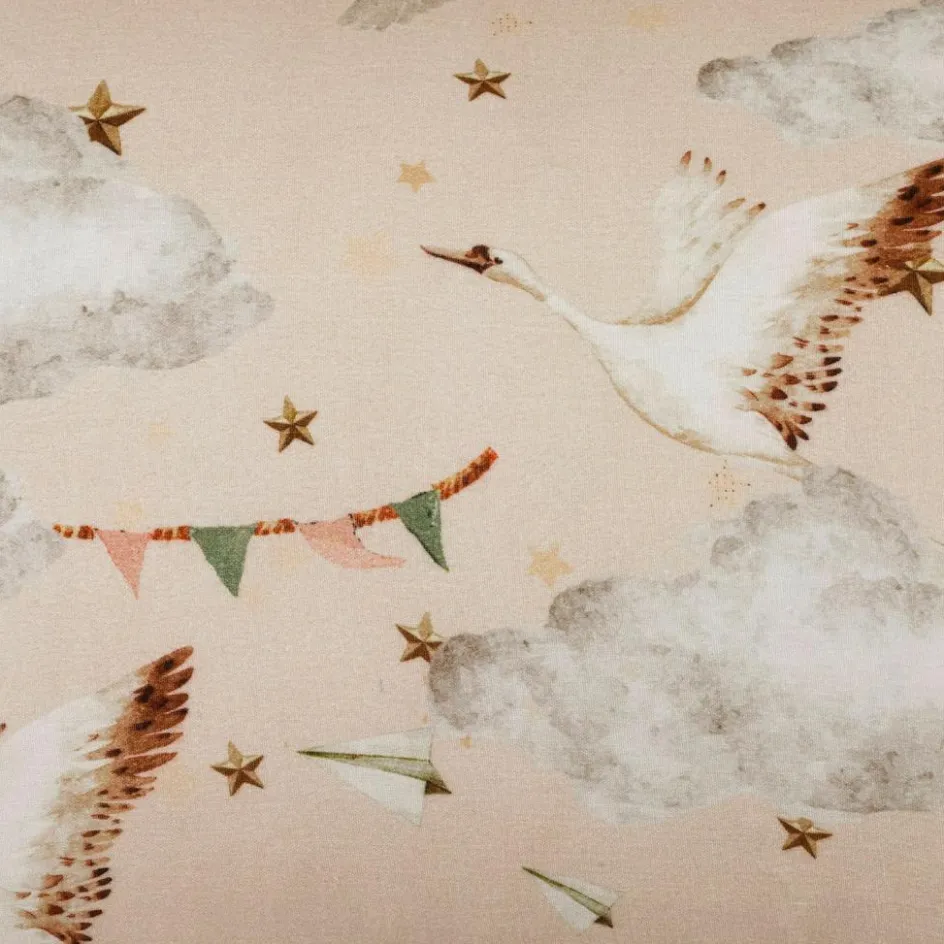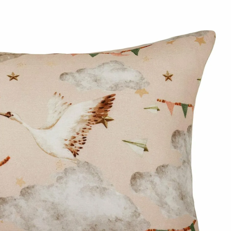 Mit dieser wunderschönen Kissenhülle zaubern Sie eine märchenhafte Atmosphäre ins Kinderzimmer. Auf dem weichen Baumwollstoff schweben zarte Wolken und majestätische Vögel durch eine Landschaft voller Sterne. Die feinen Details des Musters wirken beruhigend und regen die Fantasie an. Hergestellt aus hochwertiger, reiner Baumwolle ist diese Kissenhülle nicht nur besonders angenehm auf der Haut, sondern auch langlebig und robust. Sie fügt sich mühelos in jedes Einrichtungskonzept für Kinderzimmer ein und wird schnell zum Lieblingsstück auf dem Bett oder der Kuschelecke.