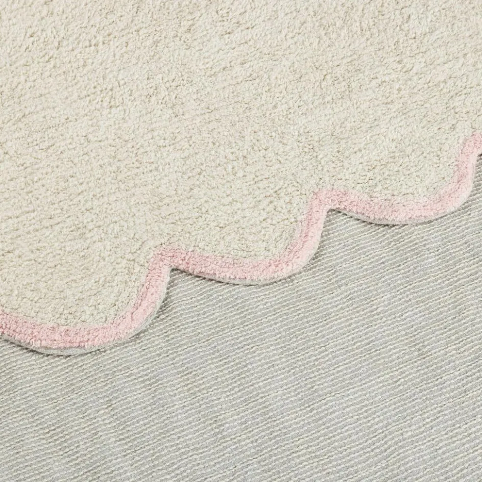 Wie ein sanfter Tritt in ein Wattewölkchen – so fühlt sich dieser bezaubernde Teppich aus reiner Baumwolle an. Seine flauschige, getuftete Oberfläche mit charakteristischer „Shaggy“-Struktur erinnert an feine, lose gekämmte Fasern, die sich beim Barfußlaufen kuschelig an die Haut schmiegen. Ob als Spielunterlage, Leseecke oder Blickfang – der Teppich verleiht dem Kinderzimmer eine warme, beruhigende Atmosphäre. Besonders liebevoll: der gewellte Rand in zartem Rosa, der dem Design eine verspielte Note gibt. Und wenn beim Spielen doch mal etwas daneben geht? Kein Problem – der Teppich ist einfach waschbar und bereit für jedes neue Abenteuer.