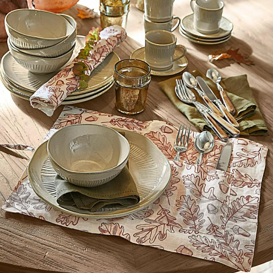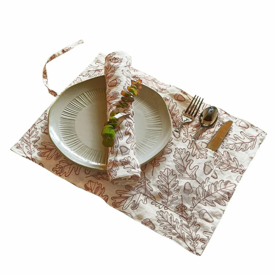 Dieses hübsche Platz-Set bringt Sie auch bei Tisch in die richtige Stimmungslage. Dekorativ bedruckt mit Blättern und Früchten der Eichel setzen die Sets schöne Farbhighlights und strahlen wohnliche Wärme aus. Ein natürliches Gewebe aus Leinen bildet die Basis – die hochwertige Qualität ist charaktervoll in der Struktur, robust genug für jeden Tag und in der Maschine waschbar. Praktisch: Durch die aufgenähte Einstecktasche lassen sich Besteck und Serviette elegant platzieren. Die Accessoires passen wunderbar zu Tongeschirr und machen Ihr Tischambiente einzigartig und gemütlich.
