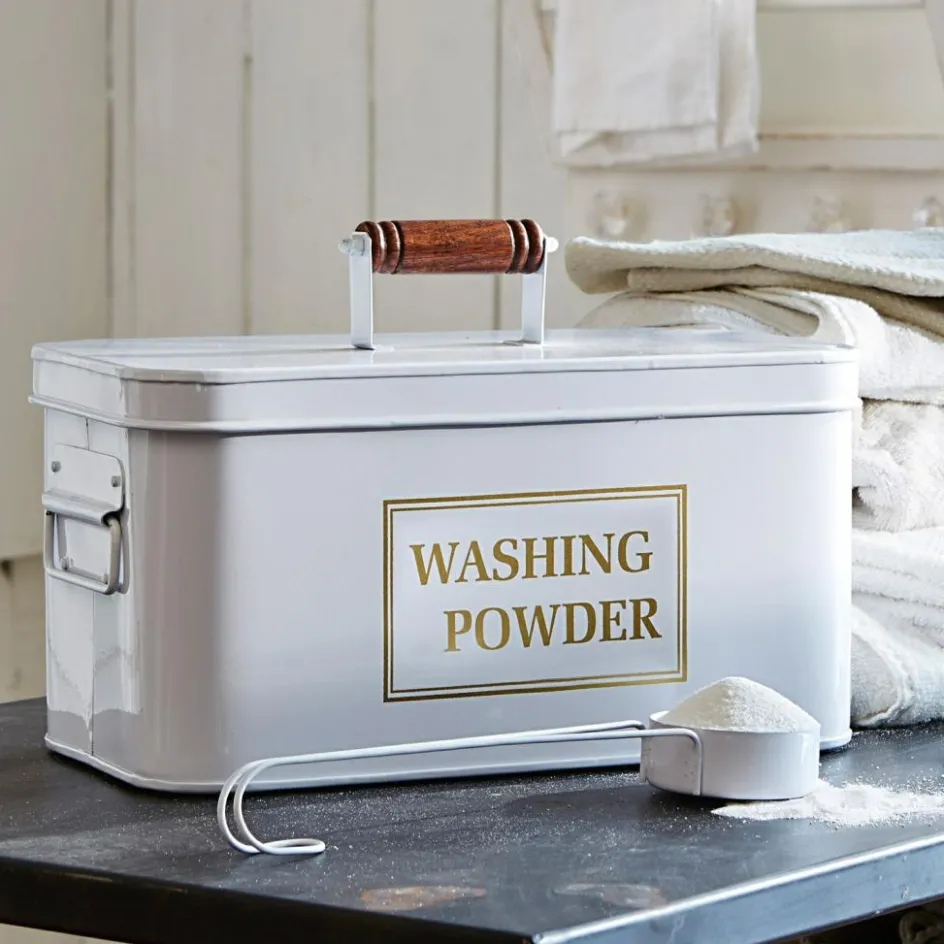 Genießen Sie selbst beim Waschen eine schöne Optik und das zauberhafte Flair einer Vintage-Waschküche. Und zwar mit diesem sehr dekorativen Behälter für Waschpulver. Mit der beigelegten, formschönen Portionier-Kelle wird das Waschen besonders einfach. Mit dem hübschen Tragegriff lässt das stilechte Retro-Modell sich leicht verstellen. Es besteht aus edlem Mangoholz am Griff und Eisen. Ein Stück das wirklich wie aus einer anderen Zeit wirkt und an „Omas Waschküche“ und die Waschsalons vergangener Zeiten erinnert. Ein wunderhübscher und sehr nützlicher Haushaltshelfer, dank dem man sich richtig auf den Waschtag und den Duft frischer Wäsche freut.