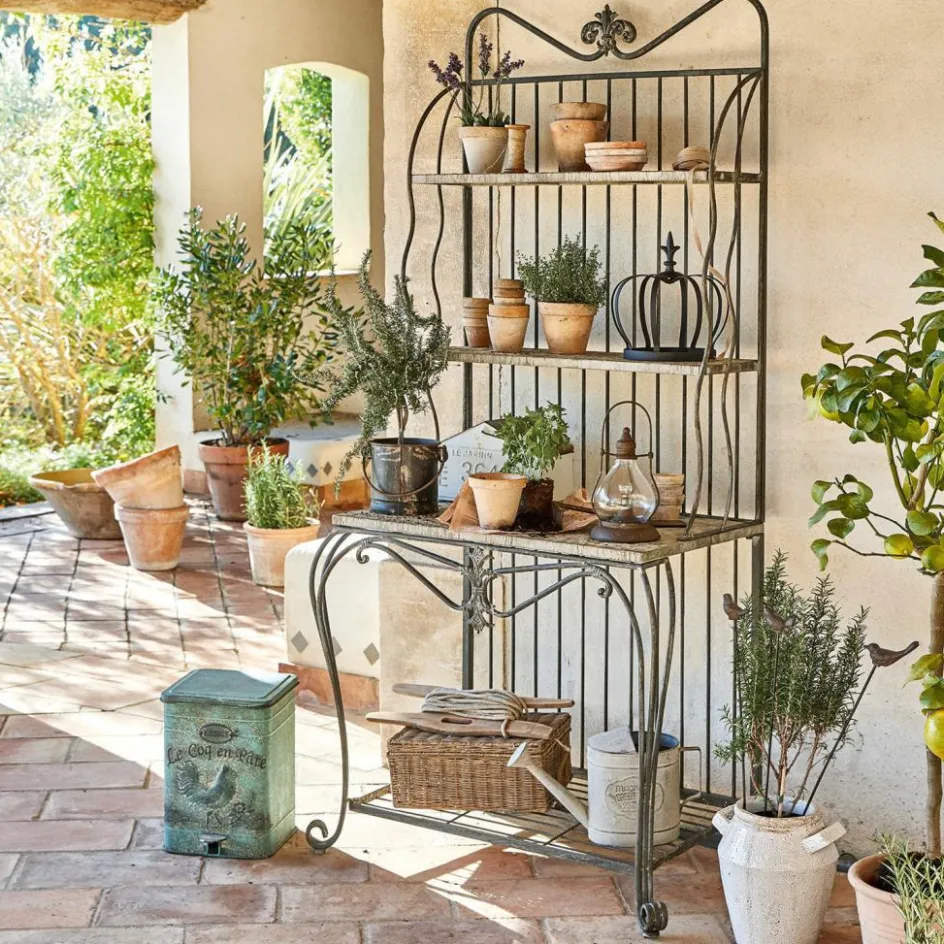 Dieser Pflanztisch ist äußerst dekorativ, funktionell und auf so viele Arten nützlich. Denn nicht nur als Pflanztisch tut er seine Dienste, sondern auch als hübsches Regal, das mit Blumen und anderer hübschen Deko bestückt werden kann. Dieser Allrounder schafft also Ordnung und präsentiert Ihre liebsten Gartendeko besonders hübsch. Seine filigrane Gestalt ist von besonderer Eleganz geprägt. Die kunstvollen Verzierungen runden dieses Prachtstück perfekt ab. Besondes zu erwähnen sind die stabilen Tischplatten und Ablageflächen. Diese kennzeichnet ein ausdrucksstarkes Finish, das den antiken Charme wundervoll präsentiert. Stellen Sie diesen Pflanztisch an prominenter Stelle: als Pflanztisch im Garten, aber auch als formschönes Regal in der Küche oder auf der Terrasse. Das robuste Möbel ist witterungsbeständig, frost- und wasserresistent. Neben einem sehr dekorativen Charakter bietet der Tisch viel Platz für Utensilien, Pflanzen und Töpfe. Seine kunstreichen Details, schwungvolle Linien und Ornamente sorgen für charmantes Vintage-Flair. Dieses wird von einem hochwertigen Antik-Finish unterstrichen, das im Laufe der Jahre nur noch schöner wird.